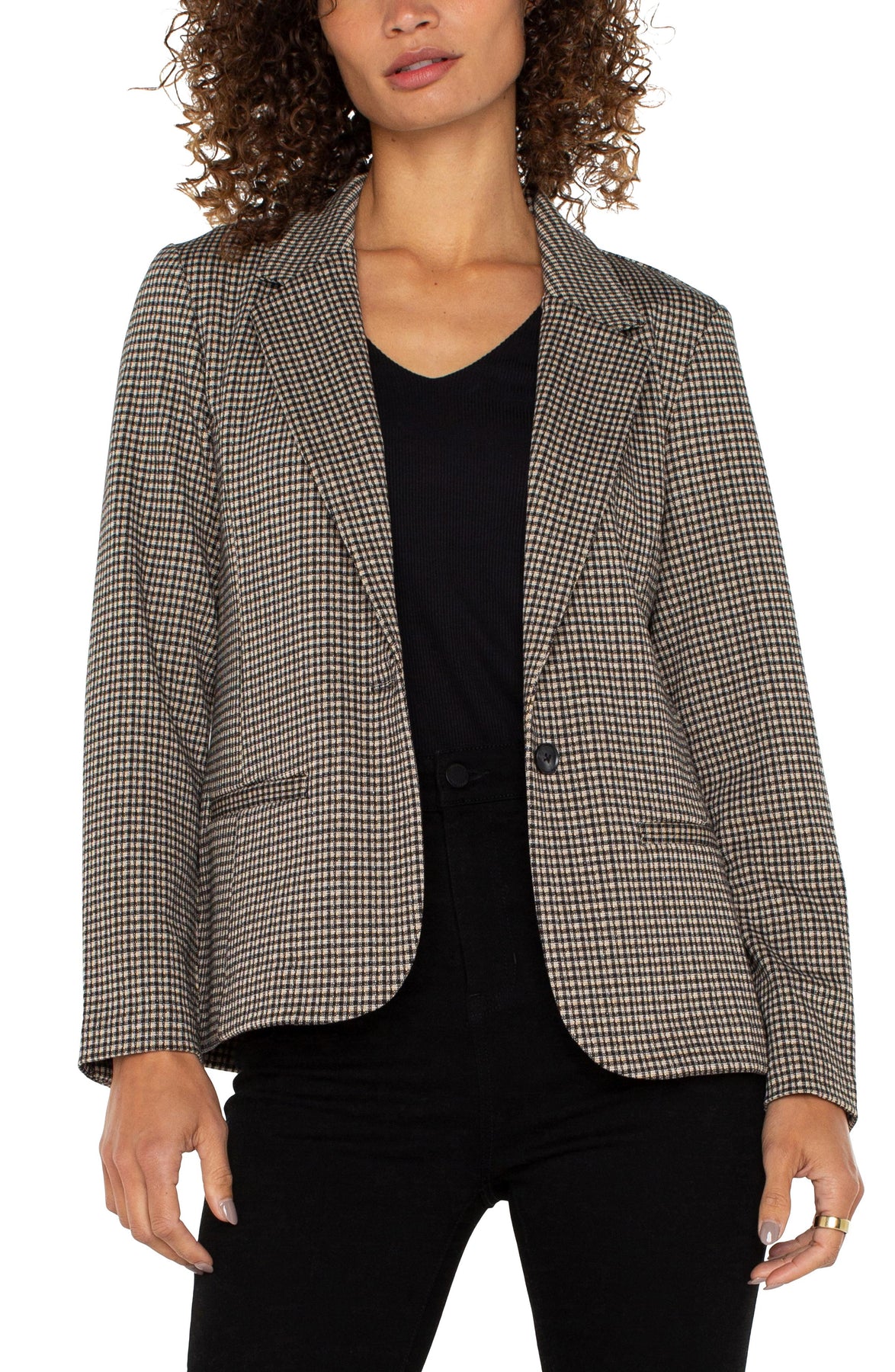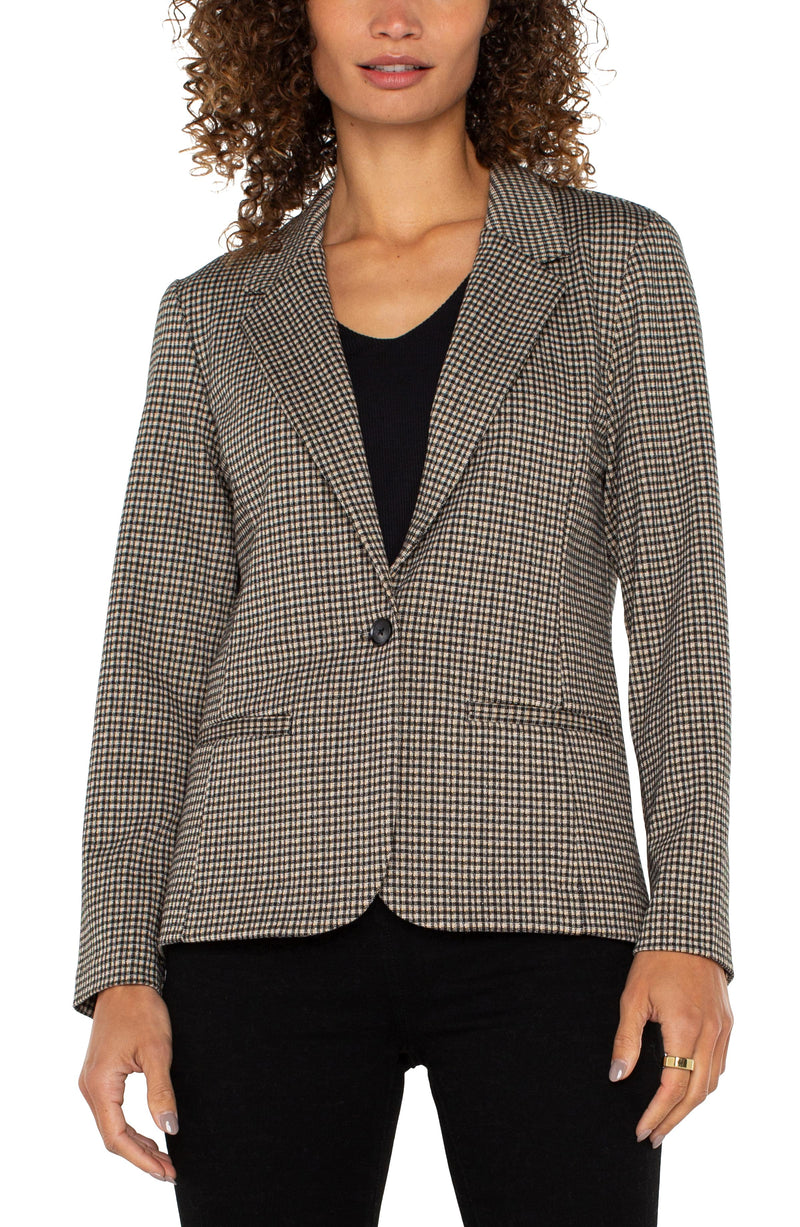 Elevate your wardrobe with the Fitted Blazer in Black Tan by Liverpool, a chic windowpane plaid blazer crafted from stretch-kissed fabric for a sleek, fitted silhouette. Perfect for both casual and elevated looks, this versatile women’s blazer offers polished style and all-day comfort, making it an essential layer for work, weekends, or nights out.