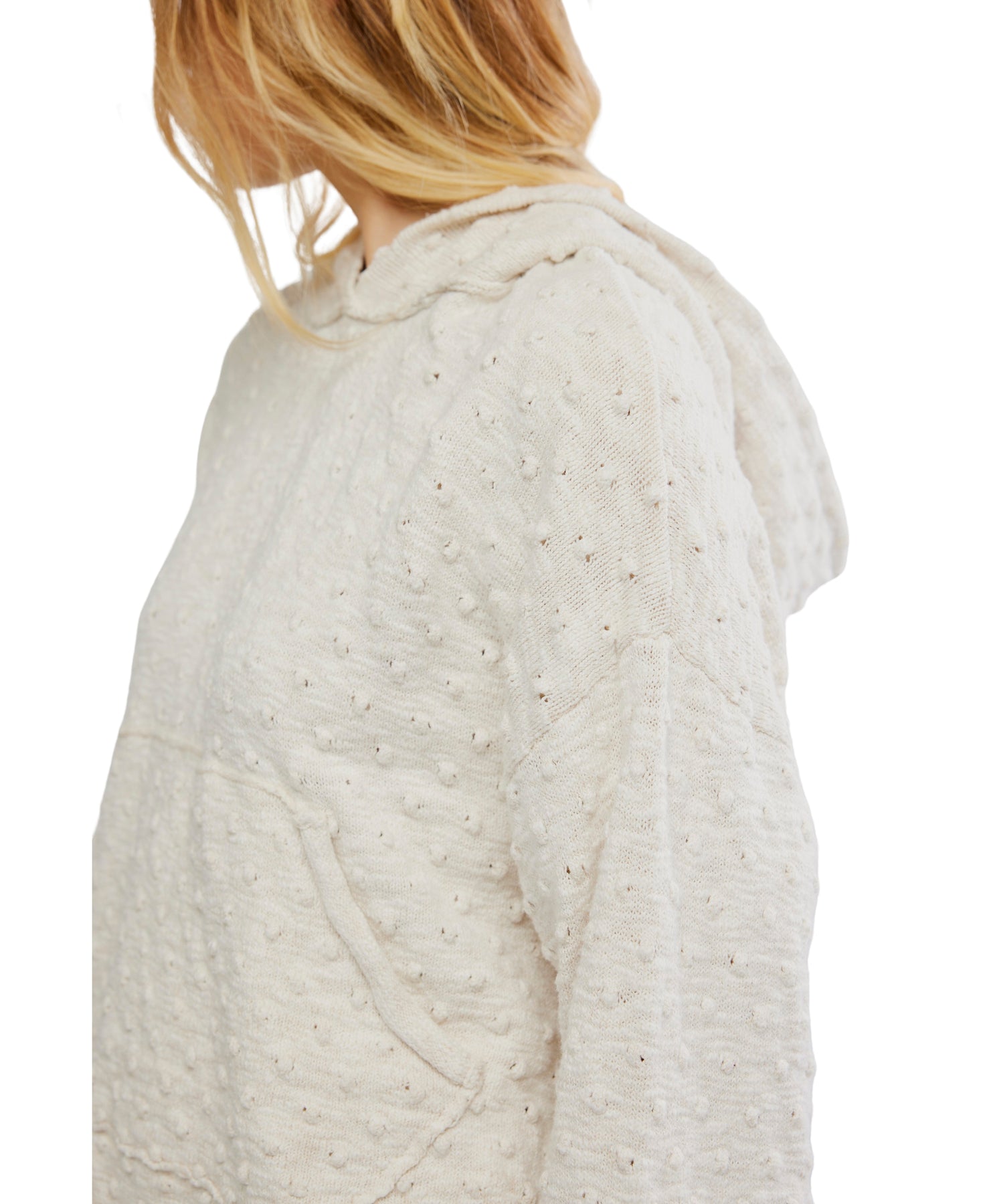 Stay cozy and chic with the Lake Side Hoodie in Marshmallow by Free People. This textured knit hoodie features raised dotted details, an oversized fit, kangaroo pocket, and drop-shoulder sleeves for laid-back comfort. Lightweight and playful, this white hoodie is perfect for effortless, any-season wear.