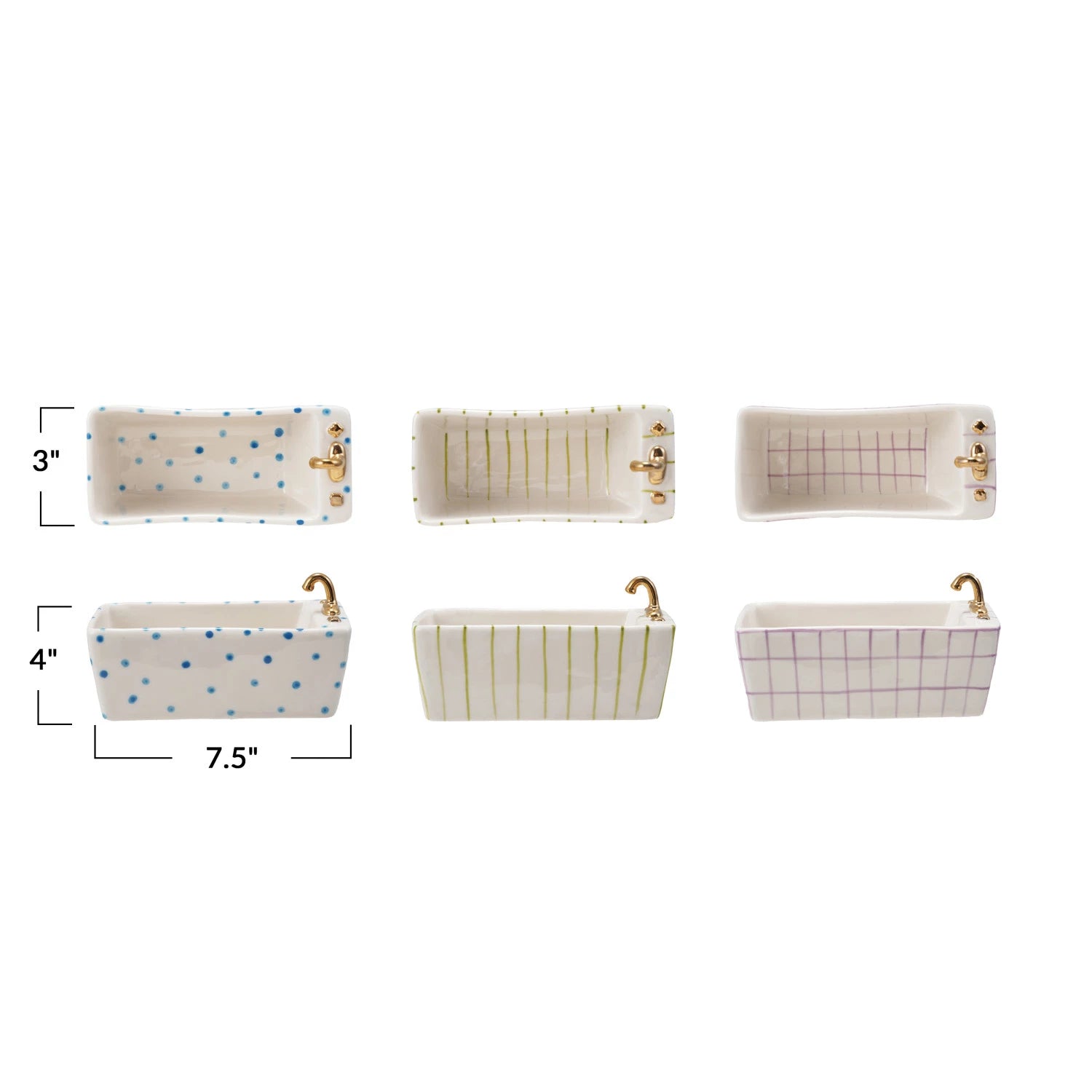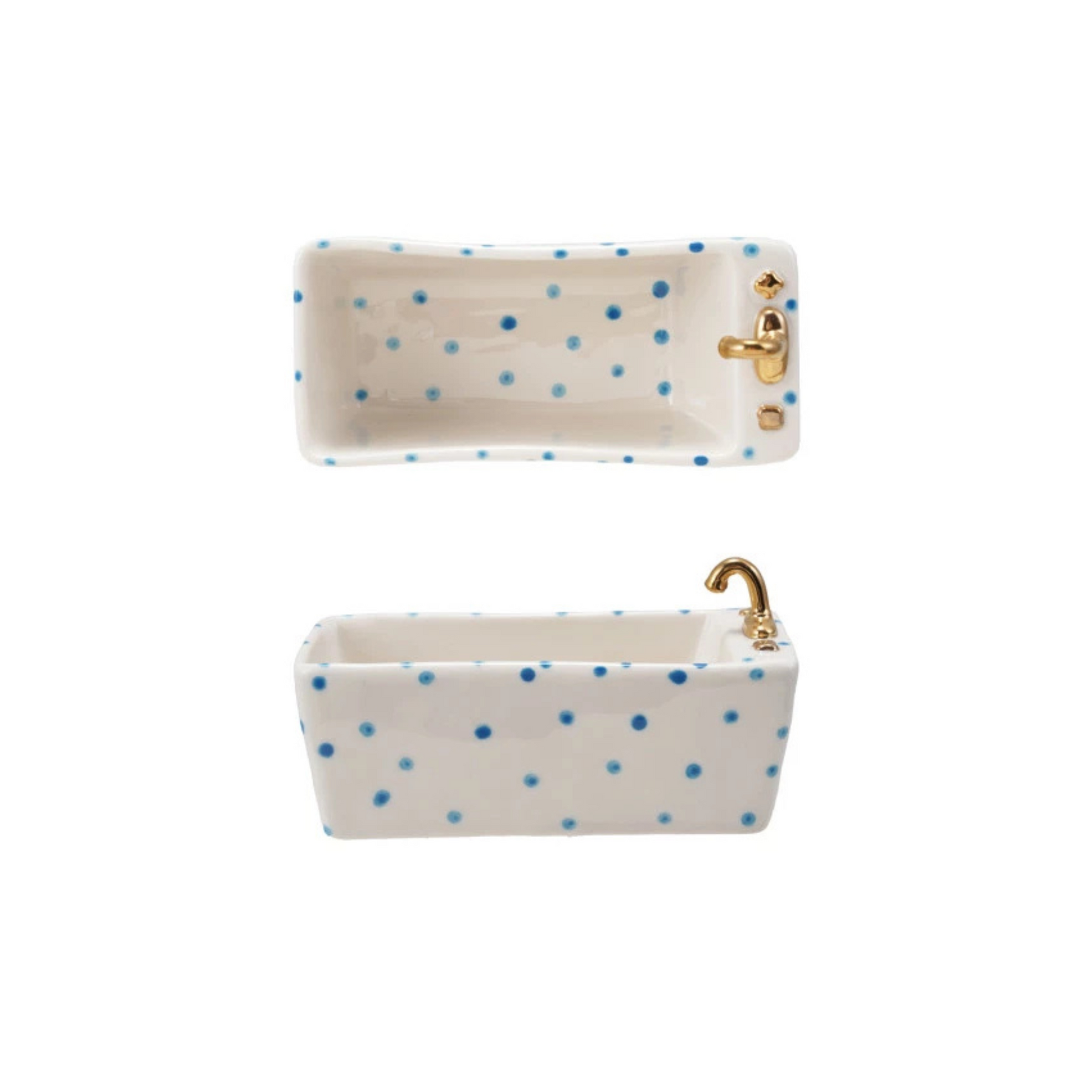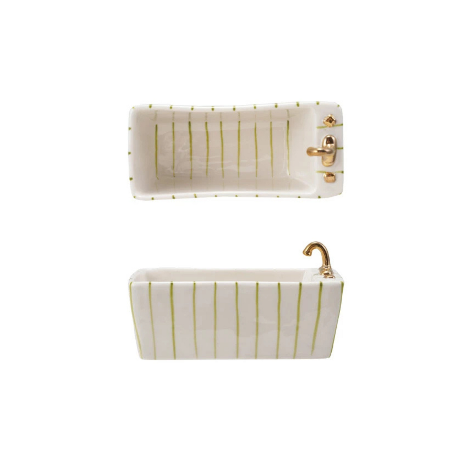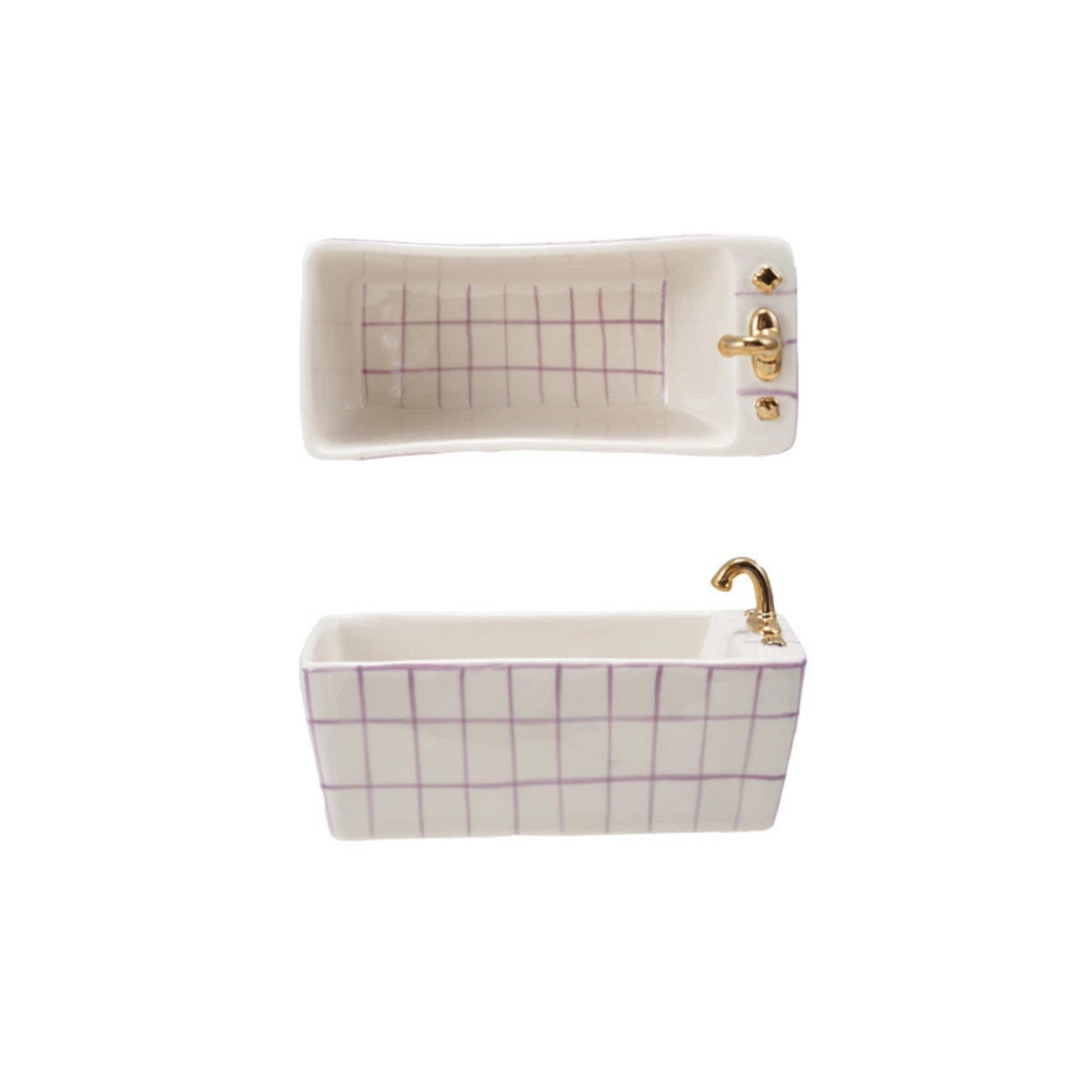 Bring charm to your sink with this Stoneware Bathtub Soap Dish—a vintage-inspired bathroom accessory perfect for holding soap in style. Made from durable stoneware, it’s a cute and functional piece of bathroom decor and a great gift for home lovers. Ideal for adding character to any home or bathroom.