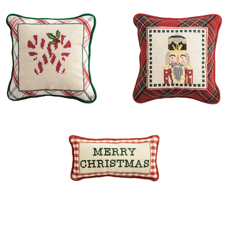 Add classic charm to your holiday home decor with our Needlepoint Pillow. Crafted from woven cotton, it features a detailed needlepoint panel and a neat piped edge for a refined finish. Perfect for cozying up your living space or gifting during Holiday 2025 celebrations.