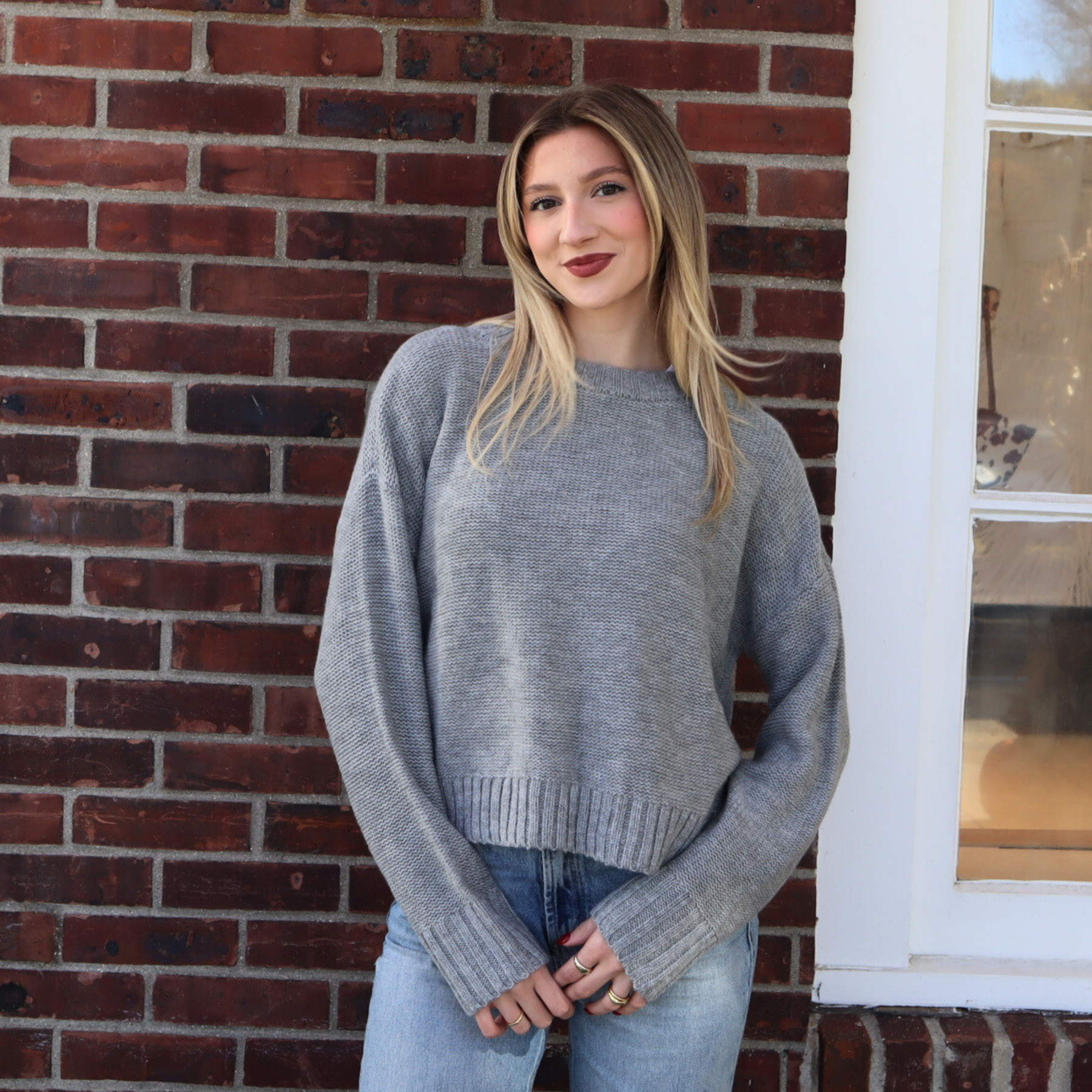 Effortlessly stylish, the Walker Pullover in Grey by Stitches + Stripes is a classic knit sweater crafted for comfort and timeless appeal. Featuring a wide ribbed hemline, this pullover sweater offers a polished finish and a flattering fit, making it perfect for layering or wearing solo for understated sophistication.