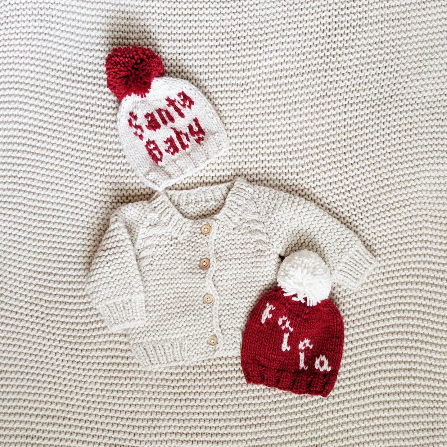 Embrace the holiday season with our Santa Baby Knit Beanie. This hand-knit cozy beanie features 'Santa Baby' in red yarn and is topped with a festive red yarn pom pom. The perfect gift for all ages, this hat will elevate any winter look and add an extra touch of cheer to your family photos.
