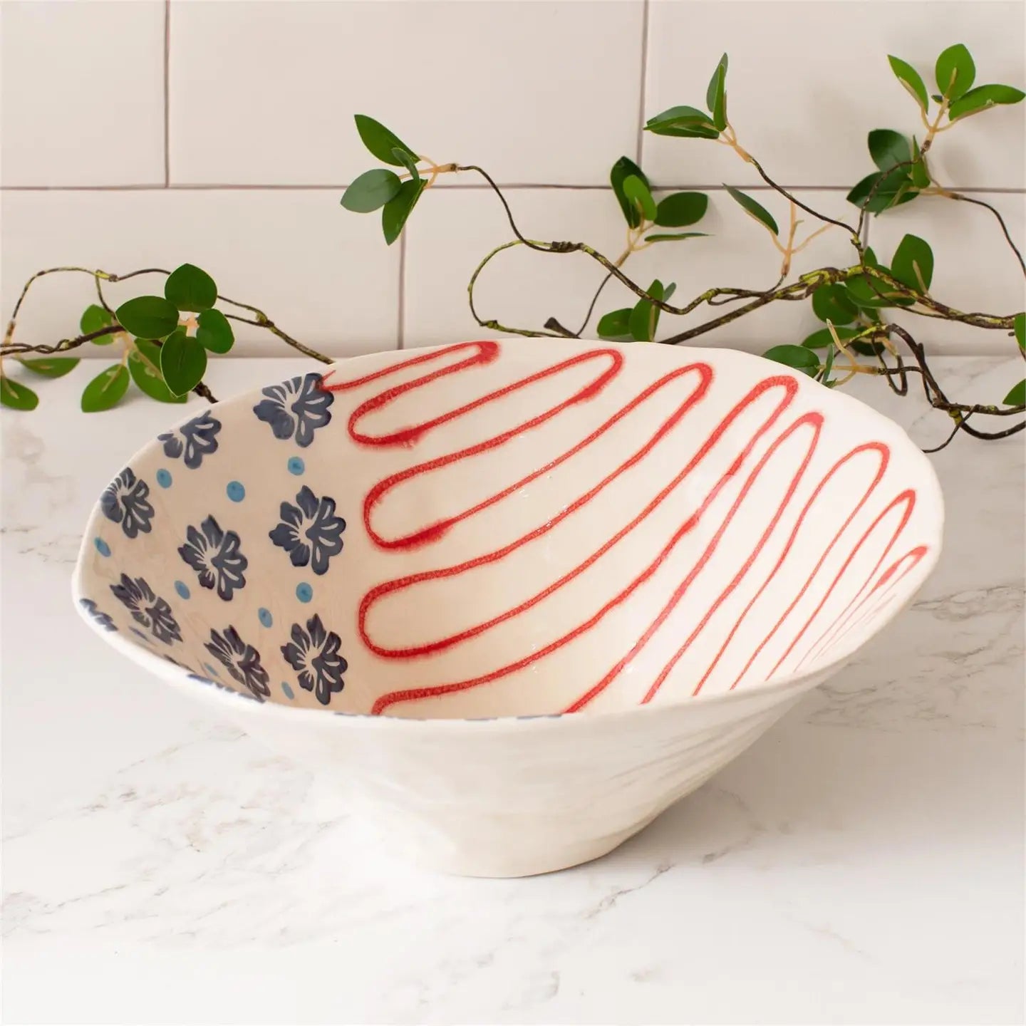 Serve with patriotic style using the Americana Art Serving Bowl, a standout piece of summer kitchen décor. Featuring classic red, white, and blue tones, this Americana serving bowl blends functionality with festive charm. Perfect for gatherings or everyday use, this decorative kitchen bowl adds a bold, seasonal touch while enhancing your patriotic table décor with timeless appeal.