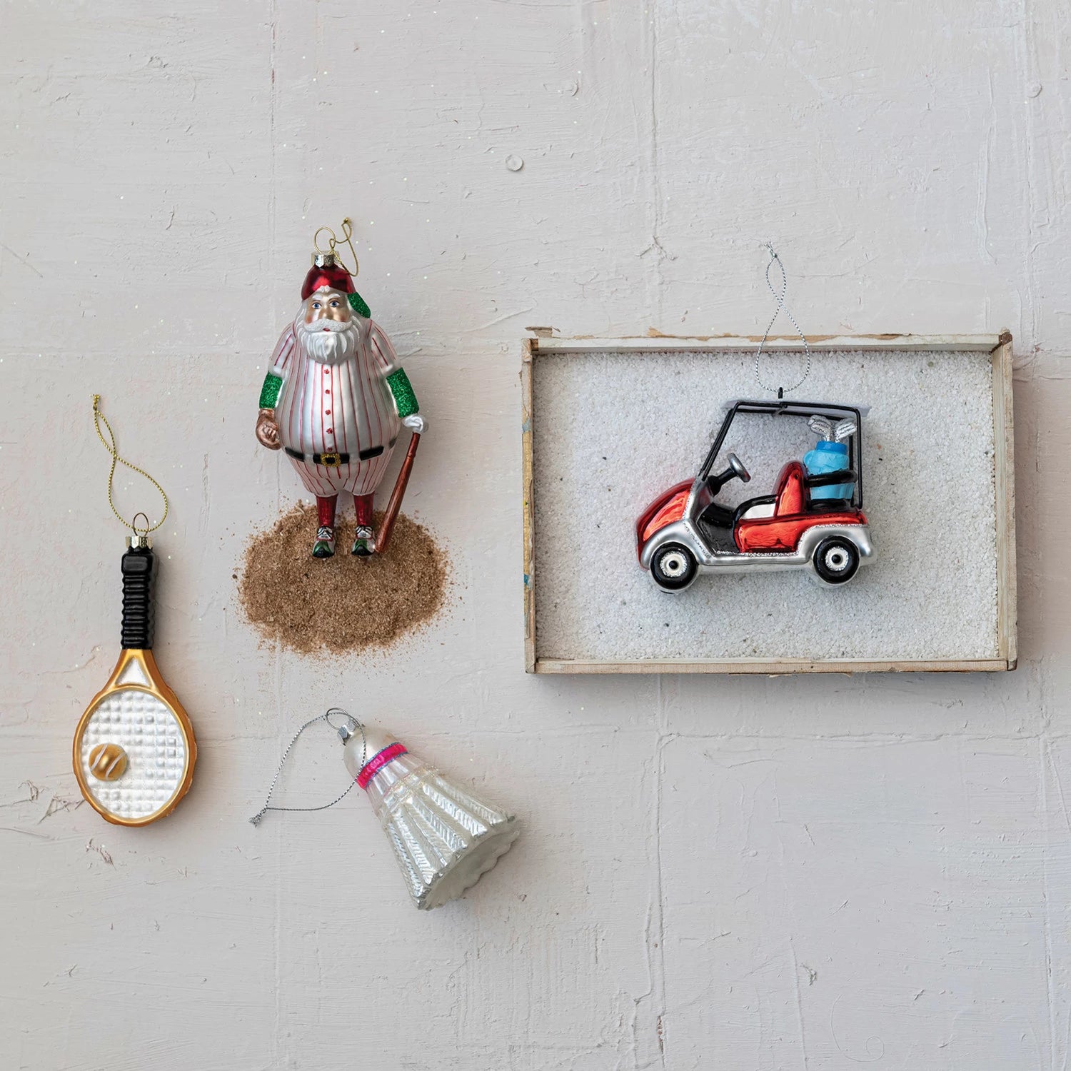 - 4-1/4"L x 3-1/4"H Glass Golf Cart Ornament w/ Glitter, Multi Color