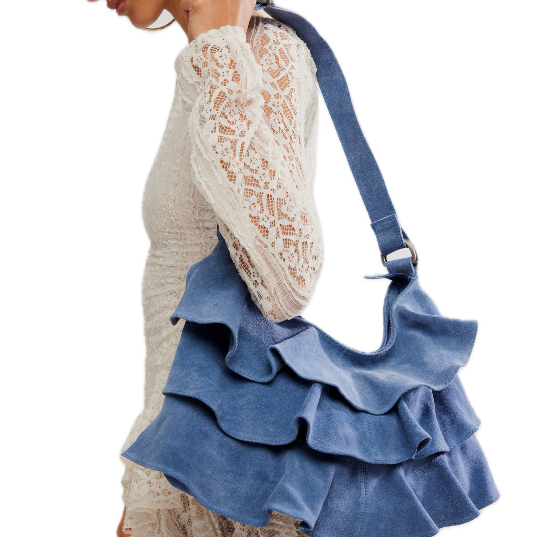 Add a playful touch to your fall accessories with the Rae Ruffle Shoulder Bag in Slate by Free People. Crafted from soft suede, this fall bag features a ruffled front, D-ring hardware, and plenty of zippered storage to keep your essentials secure. With an adjustable strap and spacious interior, it’s the perfect blend of function and femme for everyday wear.