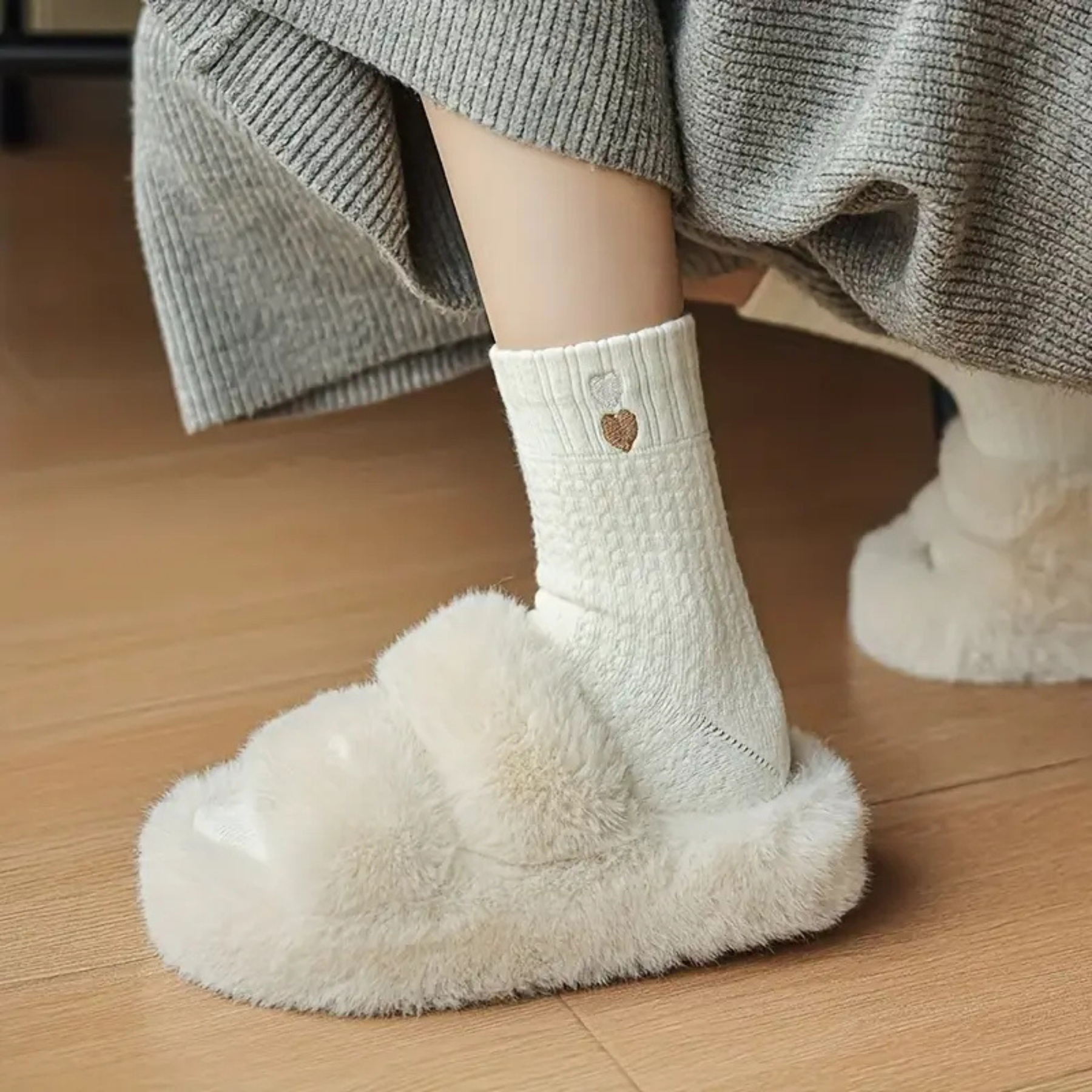 The Ashley Heart Sock in Cream by Madison's Niche combines soft, cozy comfort with a touch of charm. Featuring a subtle heart detail and warm knit, it’s perfect for cold weather lounging and makes a sweet holiday gift or seasonal wardrobe staple.