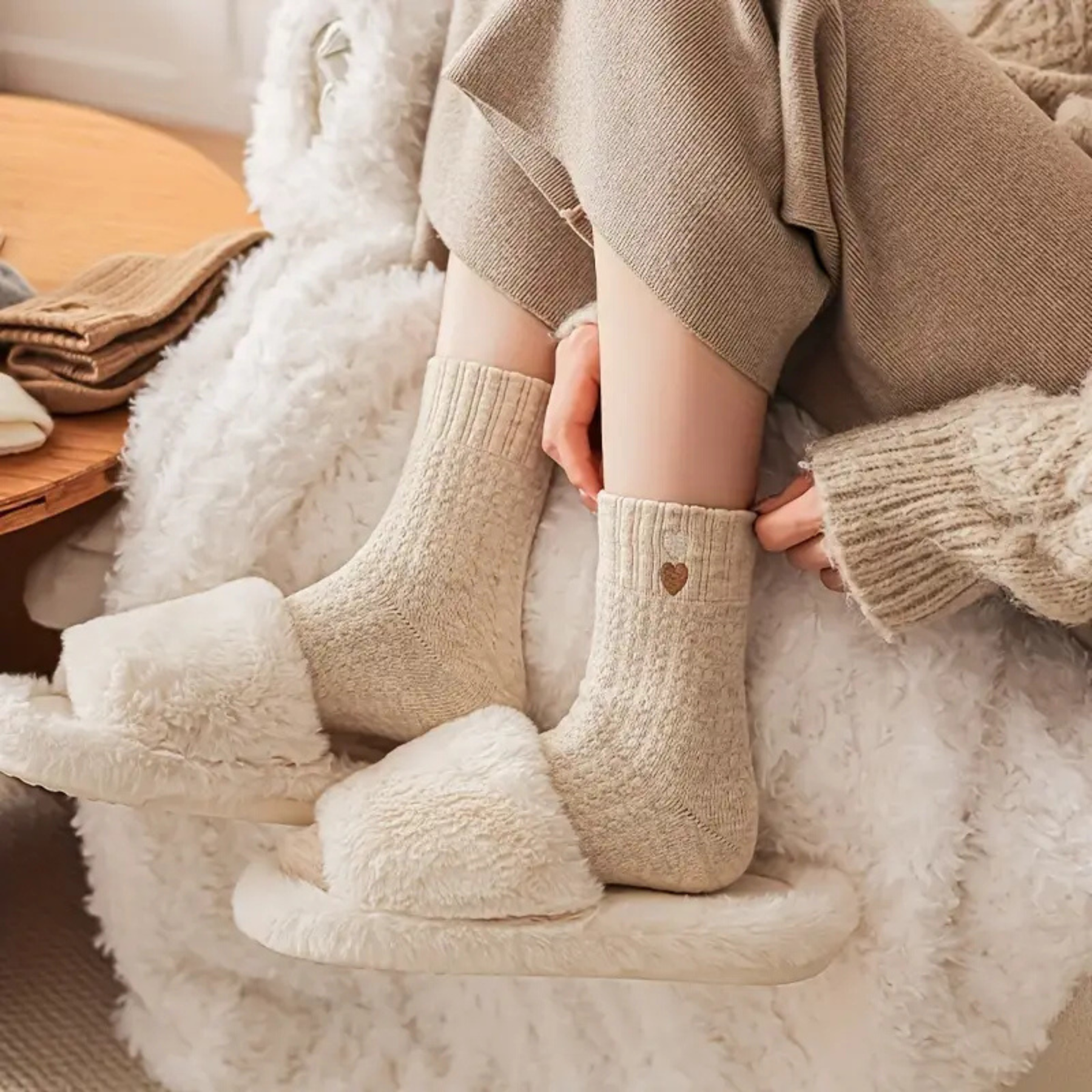 The Ashley Heart Sock in Oatmeal by Madison's Niche brings warmth and charm to your cold-weather wardrobe. Featuring a soft knit and subtle heart detail, it's as cozy as it is cute—perfect for lounging or layering. A delightful holiday gift or winter treat for yourself.