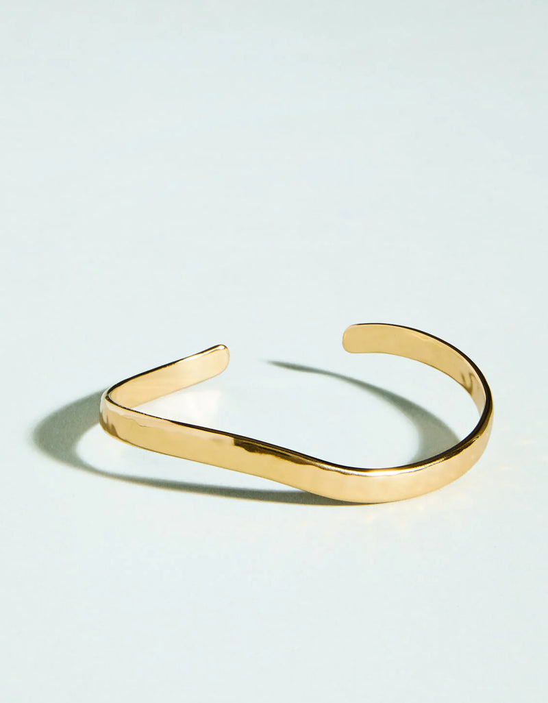 The Colleton River Cuff by Spartina is a timeless gold cuff bracelet with a textured, wavy design inspired by the flowing Colleton River. Crafted with tarnish-free 14kt gold vacuum plating, this elegant cuff shines through everyday wear, exercise, showers, and sun-soaked beach days. Perfect for stacking or mixing and matching, the Colleton River Cuff is a must-have piece for effortless, endless summer style.