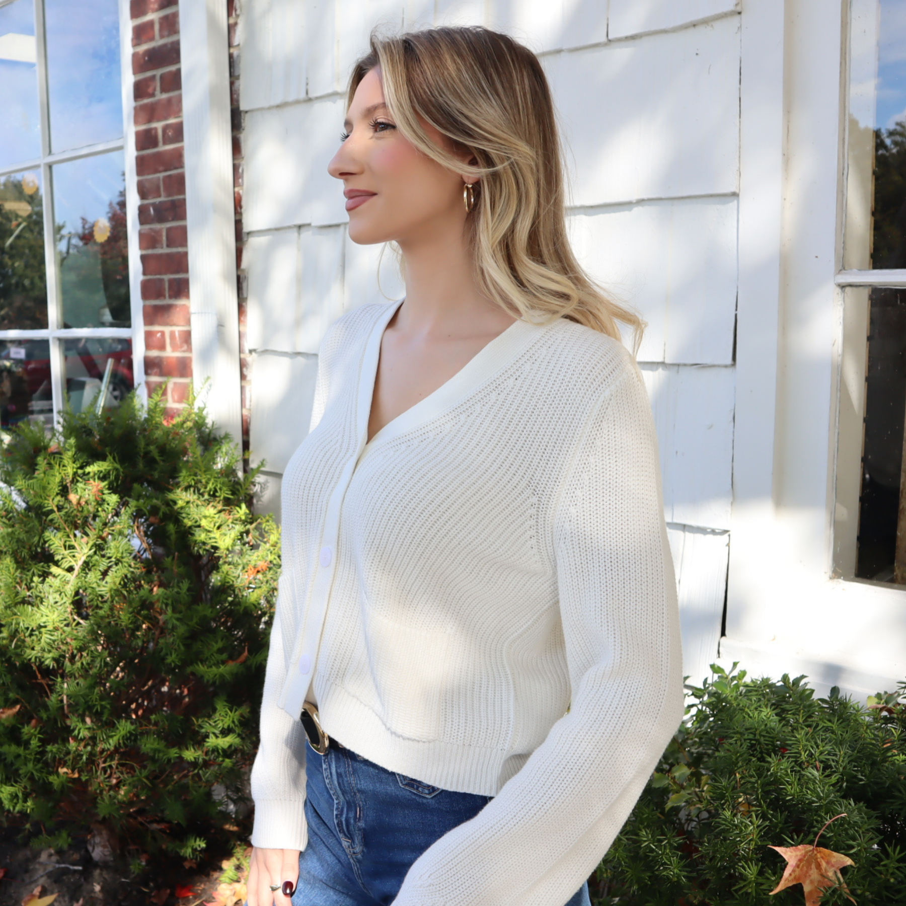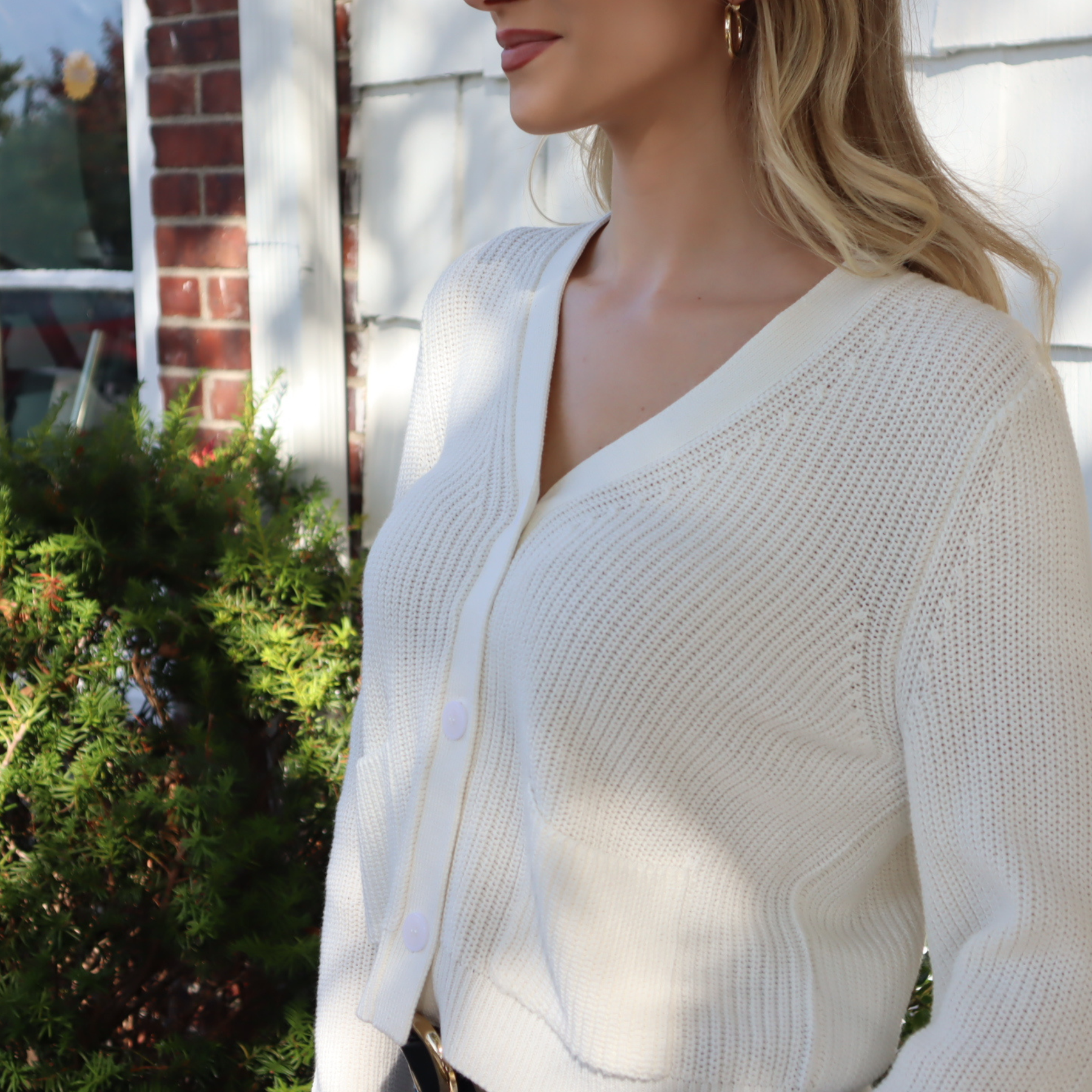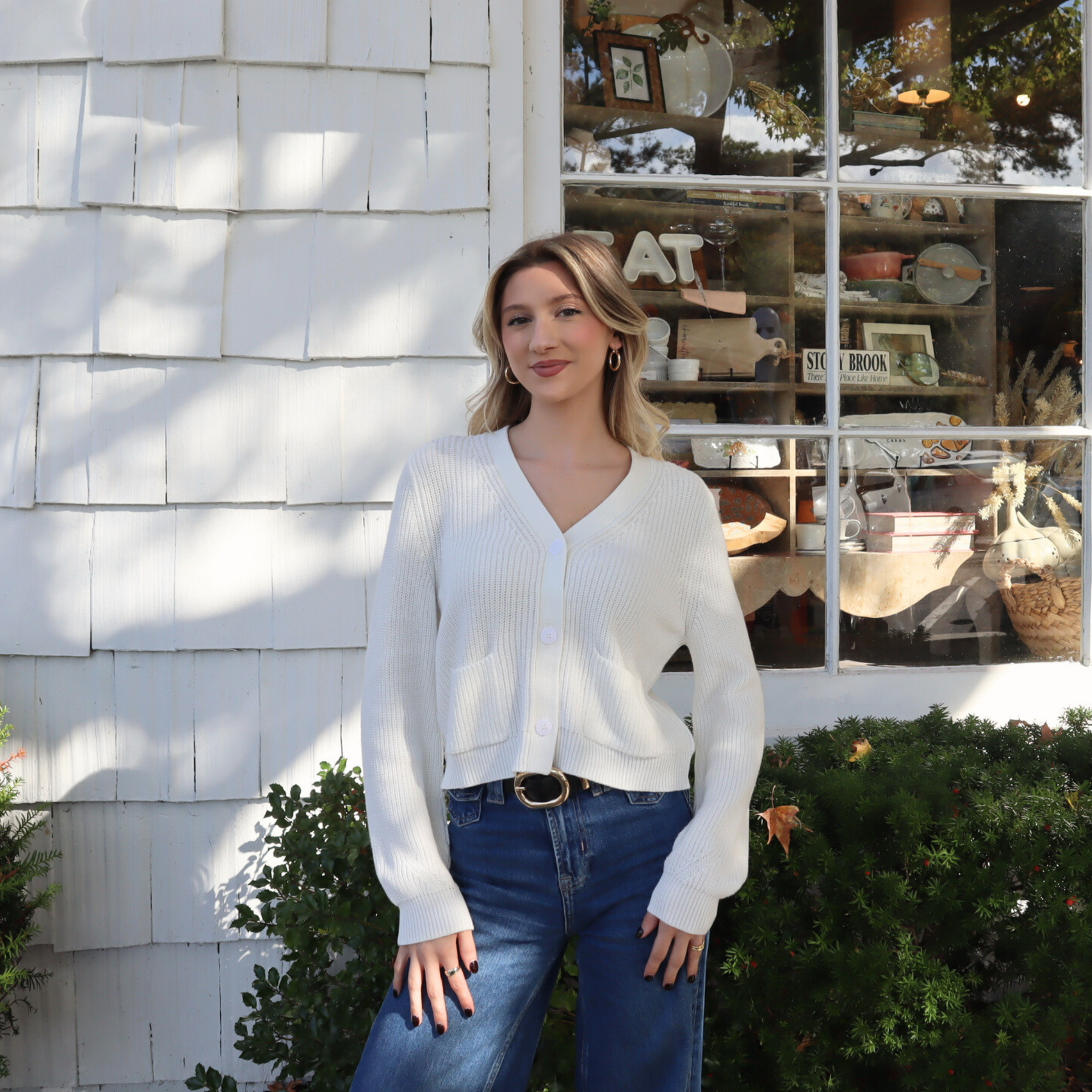 The Lucy Cardigan in Ivory by Stitches + Stripes is a chic, cropped cardigan for women that blends versatility with timeless appeal. Designed in a classic ivory tone, it layers beautifully or stands alone for a polished look. Perfect for any season, the Lucy Cardigan is a go-to piece that effortlessly complements every wardrobe.