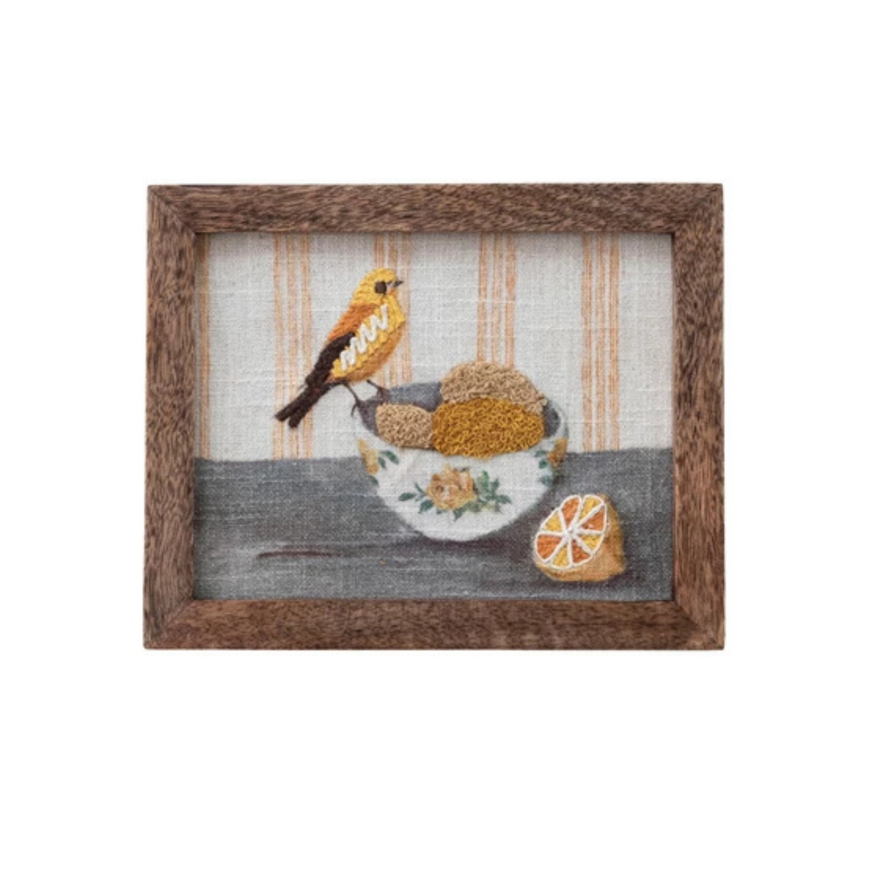 Bring nature-inspired charm to your walls with this Framed Bird Wall Art, a standout piece of home decor and wall decor. Featuring a wood frame and beautifully cotton embroidered design with bird on dish, it adds texture, color, and artisanal detail to any room. Available in 4 styles, this decorative wall piece is perfect for living rooms, kitchens, or entryways, and makes a thoughtful gift for bird lovers and décor enthusiasts alike.