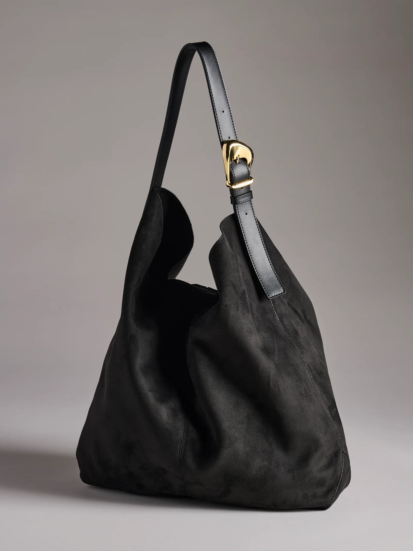 Meet the Val Hobo in Black—your everyday answer to effortless, slouchy-chic style. Made from soft suede-like material, it balances structure and ease with a relaxed silhouette and roomy interior. A magnetic snap closure keeps essentials secure, while the single strap and inner slip pocket add grab-and-go convenience. Perfect for errands, brunch, or anywhere in between, this black hobo bag delivers casual elegance with every wear.