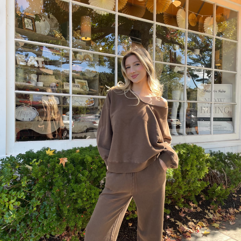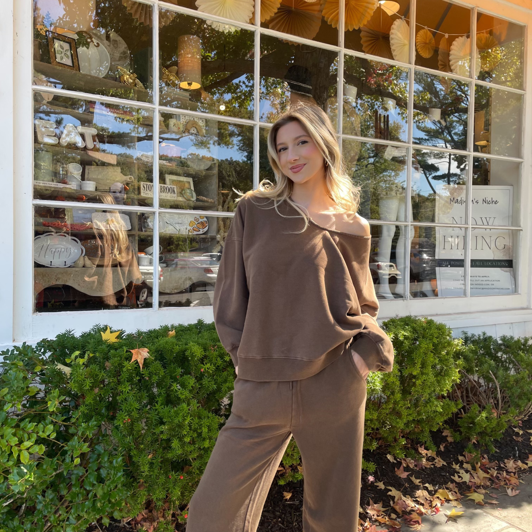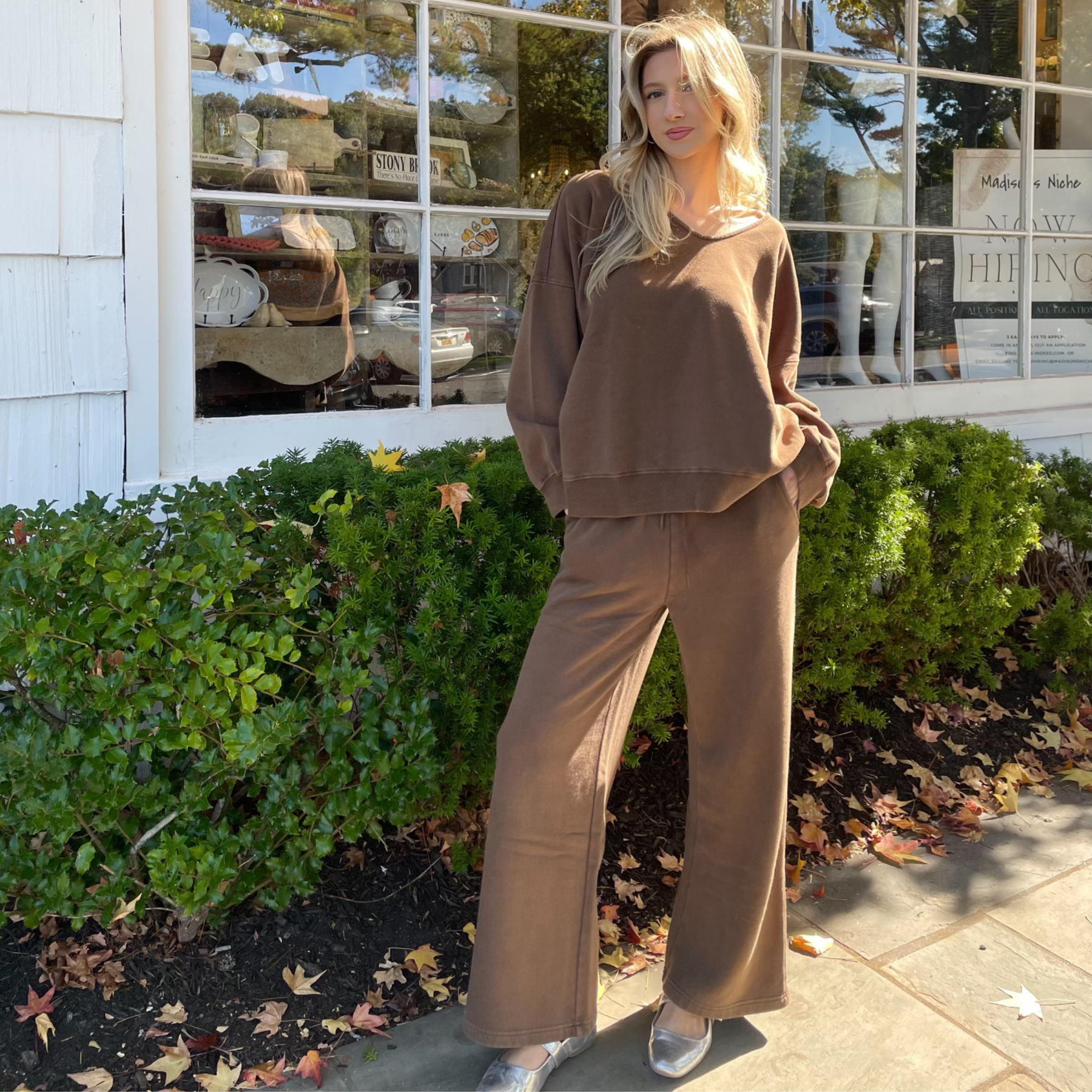 The Garment Dye V-Neck Top in Coffee is a laid-back essential with an effortlessly cool vibe. Made from soft, breathable cotton with a rich coffee brown garment-dyed finish, this V-neck top features a relaxed fit, dropped shoulders, and subtle vintage wash for that perfectly worn-in look. Easy to style with jeans, joggers, or the matching wide leg pants, this coffee V-neck shirt by Vintage Havana adds comfort and casual edge to your everyday wardrobe.