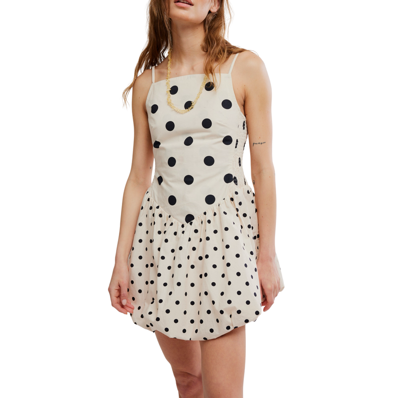 Step into effortless charm with the Misty Mini in Tee by Free People. This playful spring and summer dress features a flirty mini silhouette and a timeless polka dot pattern in a tea-inspired color palette. Perfect for brunch, date nights, or casual outings, it’s versatile enough to style with heels or sneakers for an effortlessly chic look.
