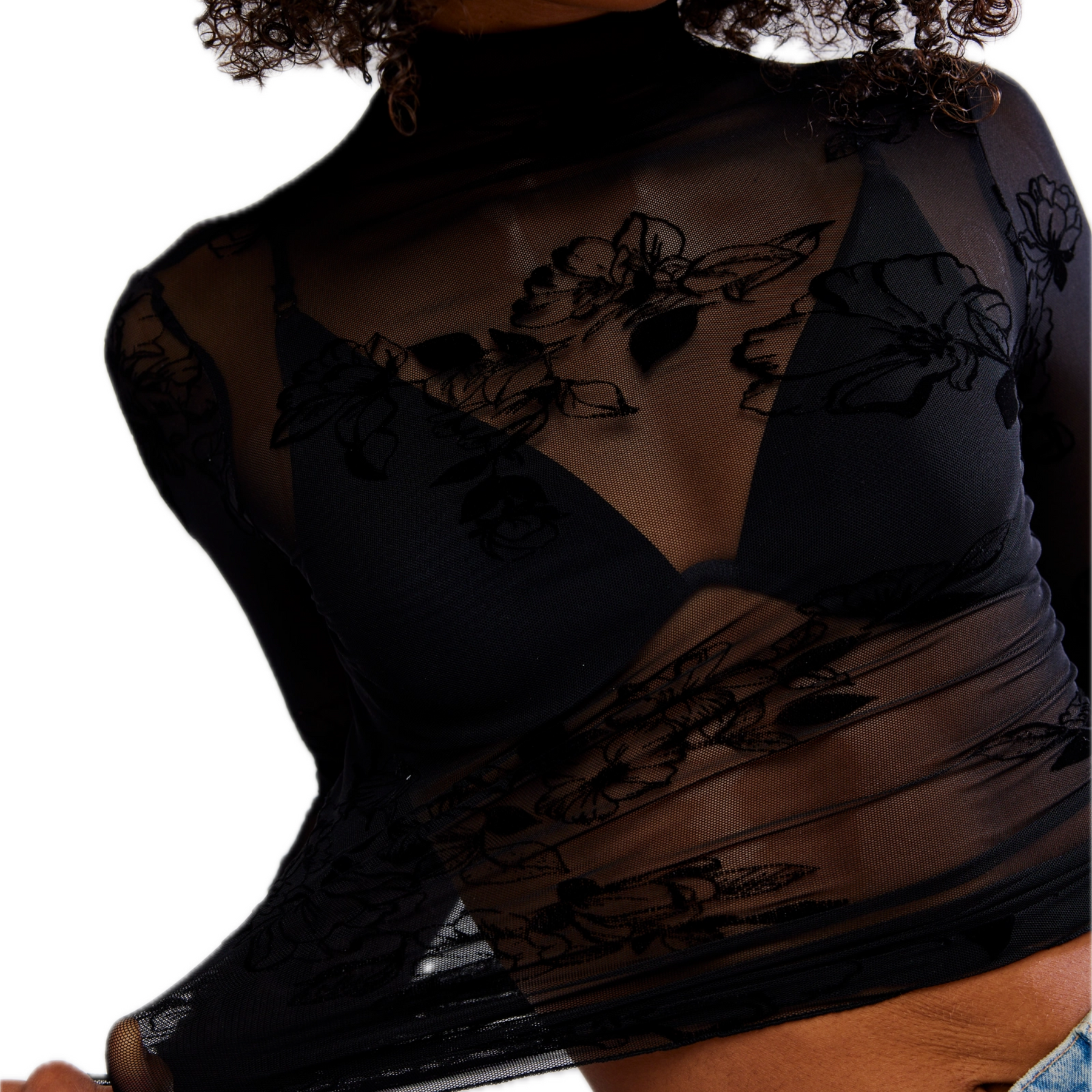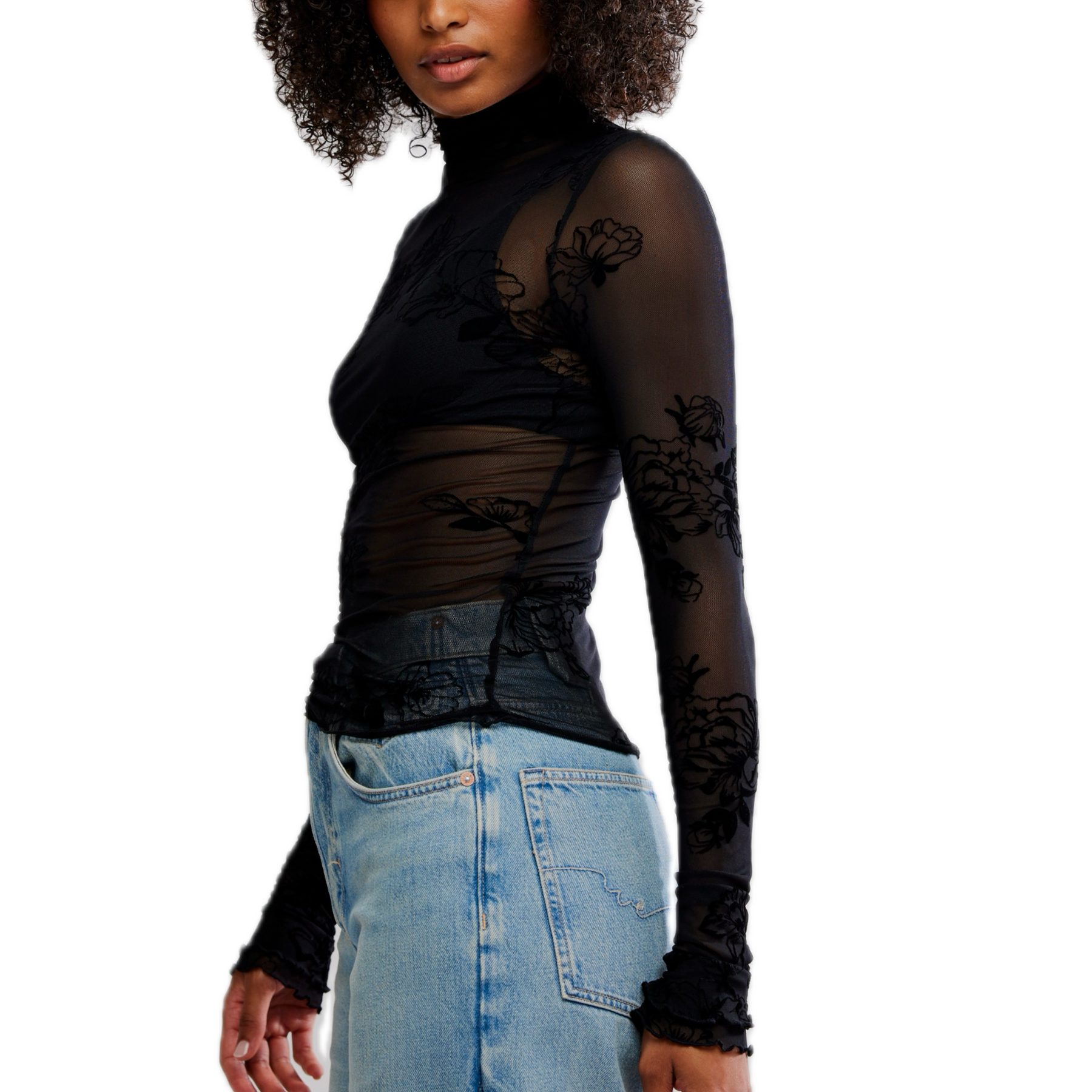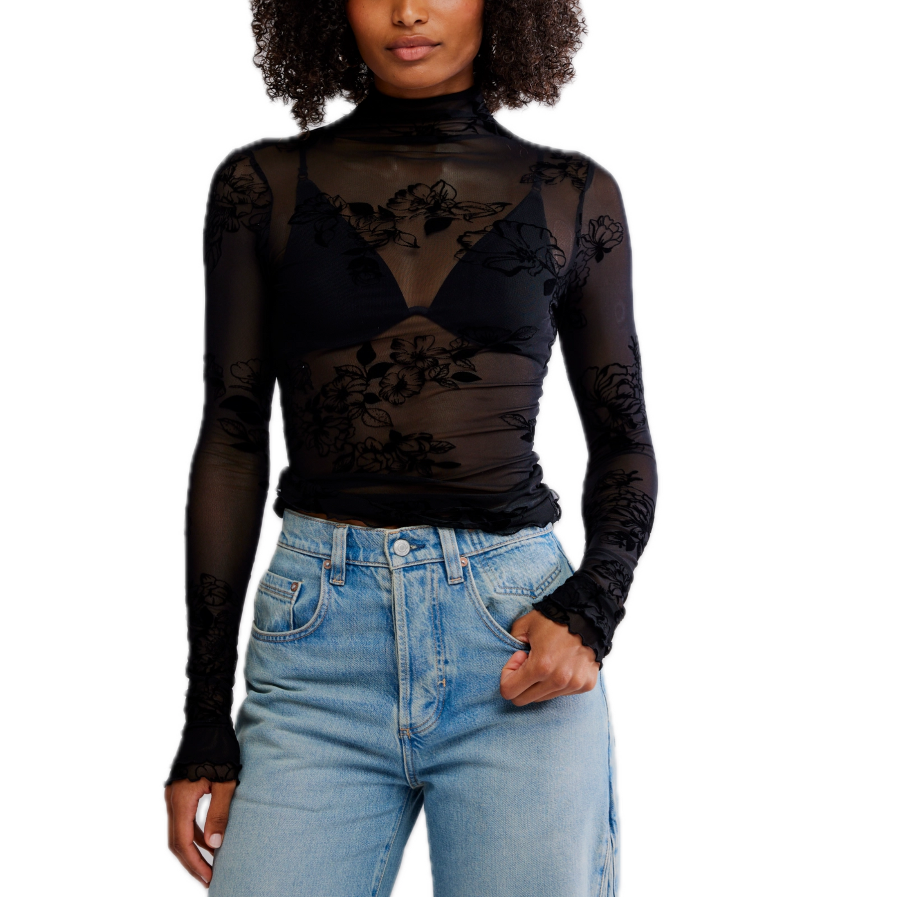 The You Decide Long Sleeve in Black by Free People is the ultimate edgy layering piece for your fall wardrobe. Featuring a sheer mesh fabrication, mock neck, and delicate lettuce trim, this fitted long sleeve adds texture and attitude to any look. Perfect under slip dresses or paired with high-rise denim for a bold, stylish statement.
