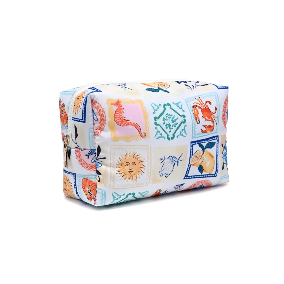 Add a splash of seaside charm with the Amalfi Escape Pouch in Positano, a playful Mediterranean-inspired makeup pouch designed to brighten your routine. Featuring colorful tile motifs and a roomy rectangular silhouette, this travel cosmetic bag keeps your beauty essentials organized with an easy zip-top closure. Made from lightweight vegan-friendly material with a wipeable finish, it’s stylish, practical, and perfect for vacations, gym days, or everyday handbag rotation.