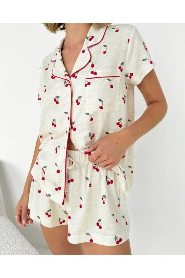 Unwind in cozy elegance with the Cherry Flora Pillowsoft Set, a charming choice for Valentine sleepwear and everyday lounging. Made from ultra-soft Pillowsoft fabric that’s super brushed for comfort, this women’s pajama set features a classic button-down top with a notch collar and chest pocket, paired with drawstring waist shorts for an easy, relaxed fit. With a subtle sheen, minimal texture, and irresistibly cozy feel, this two-piece sleep set is perfect for evening skincare routines, restful slumber, or gifting a little comfort and romance.