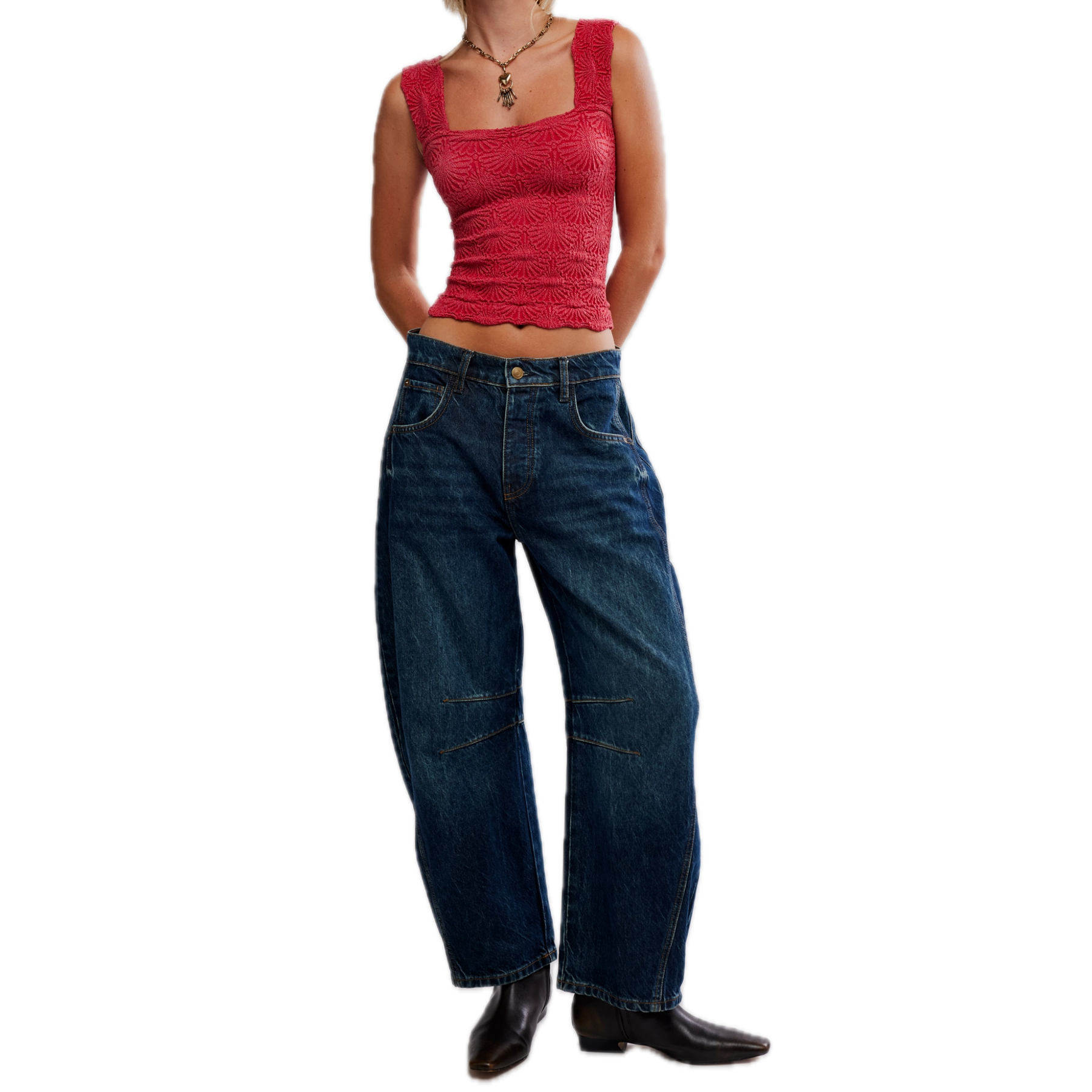 Sweet and statement-making, the Love Letter Cami in Salsa by Free People features a cropped, square-neck silhouette with a romantic jacquard floral design and playful lettuce-edge hemline. With its pull-on style, stretchy fit, and wide straps for added comfort, this vibrant red cami top is perfect for layering or wearing solo—your new go-to for adding a flirty touch to any look.