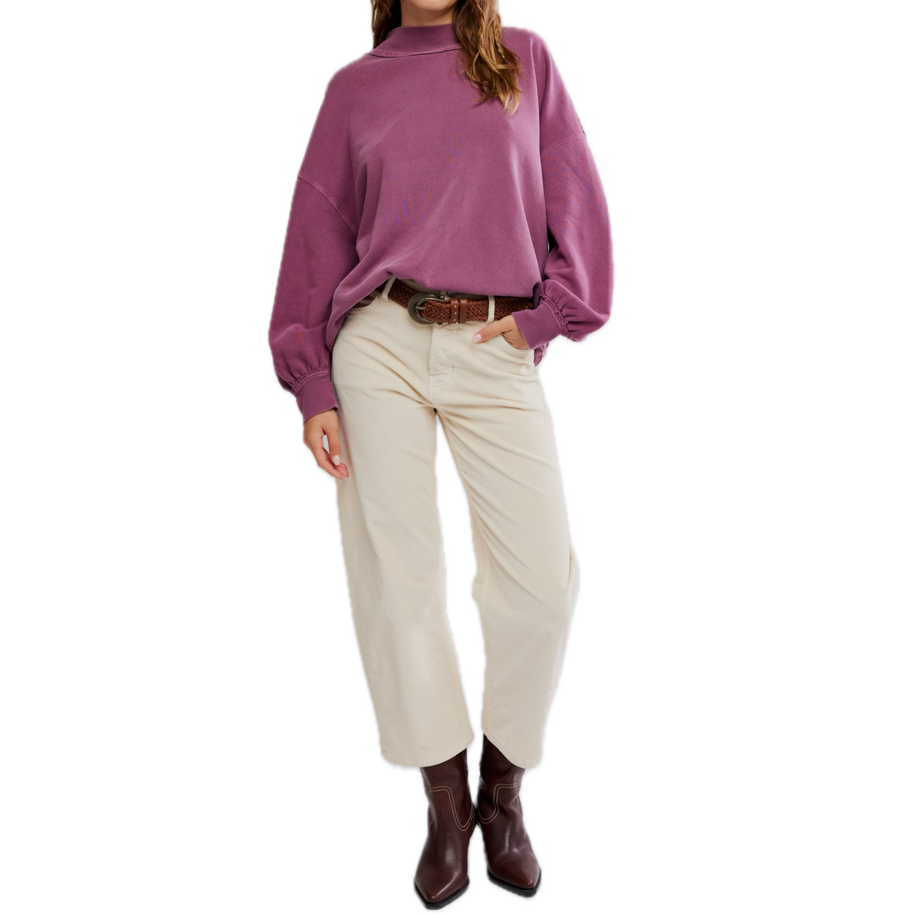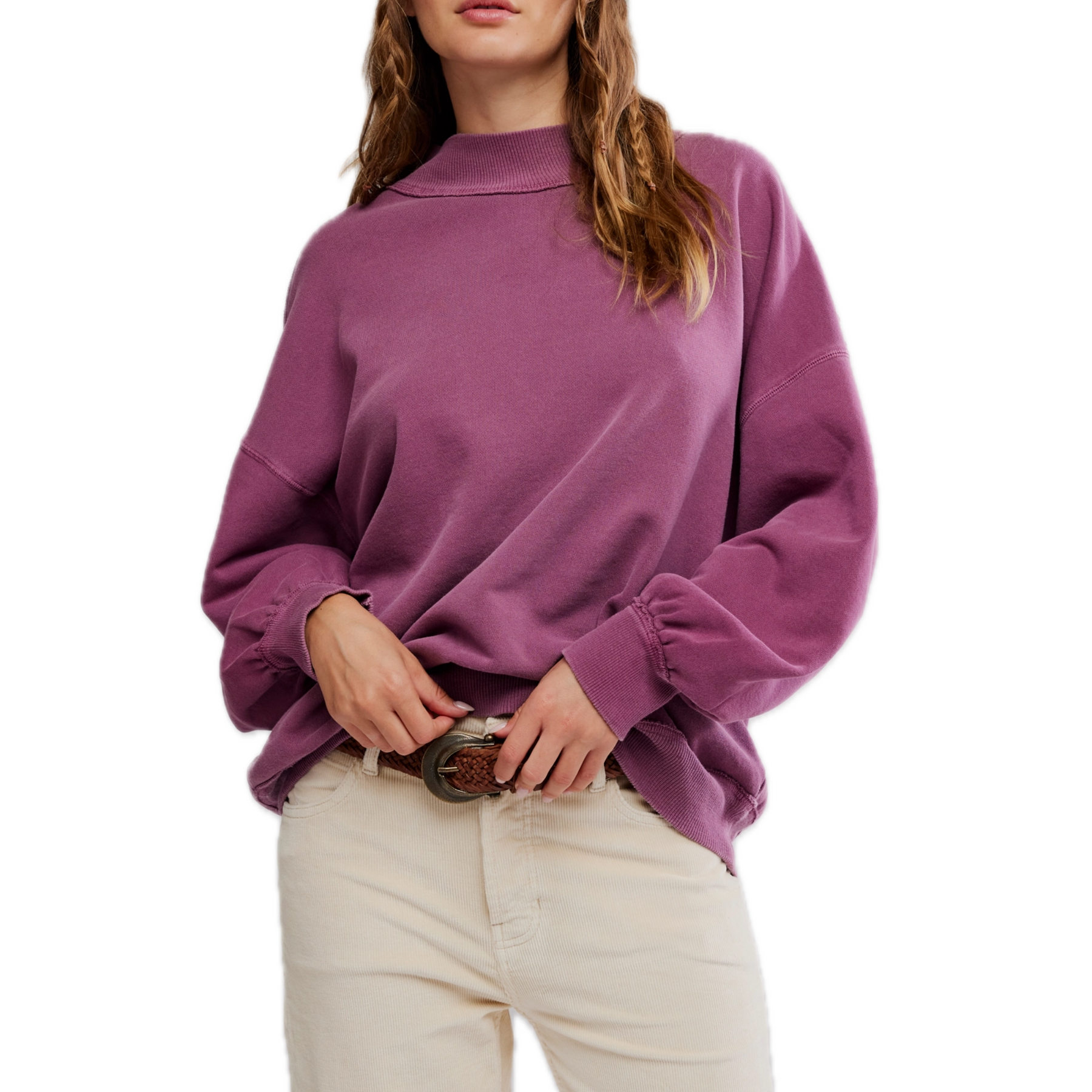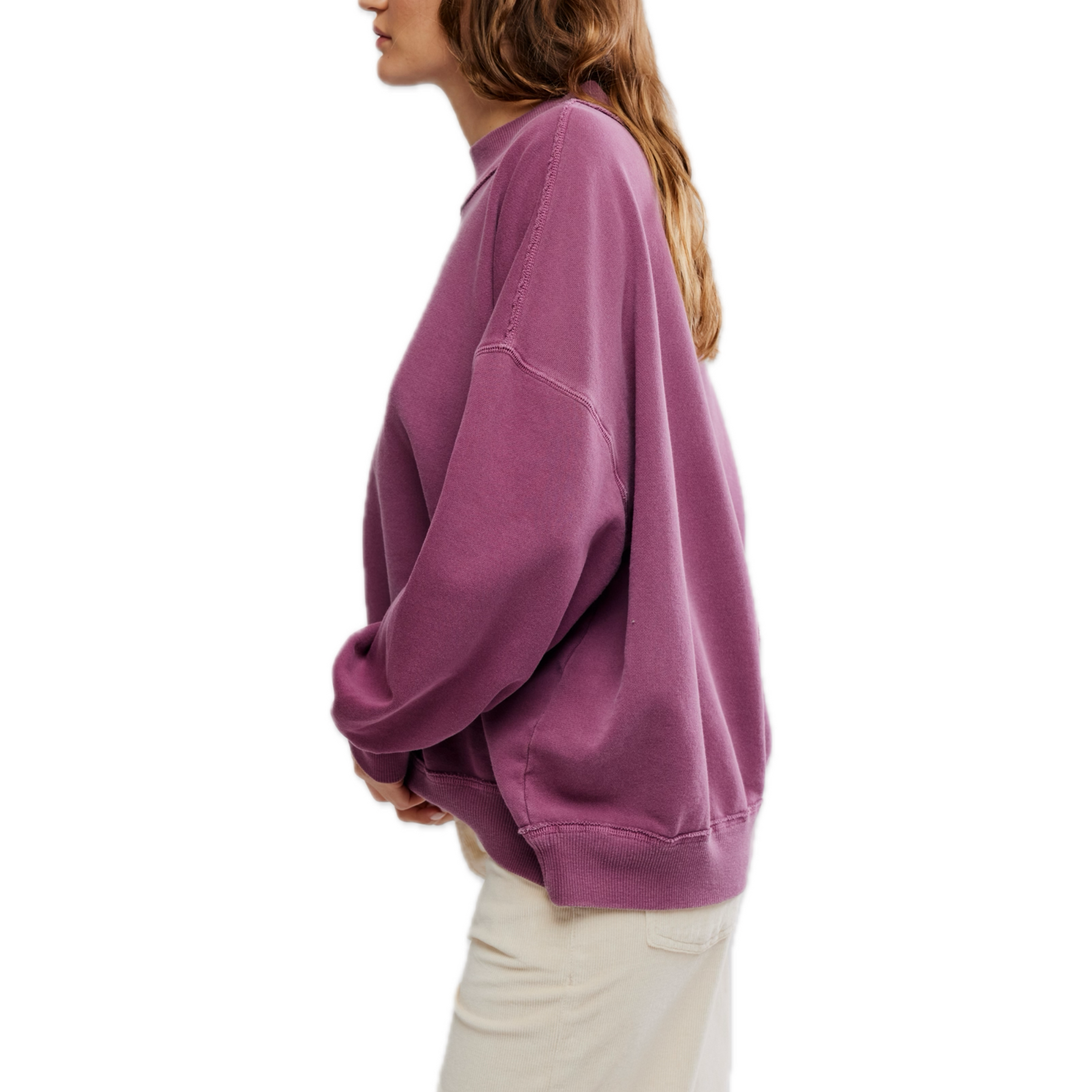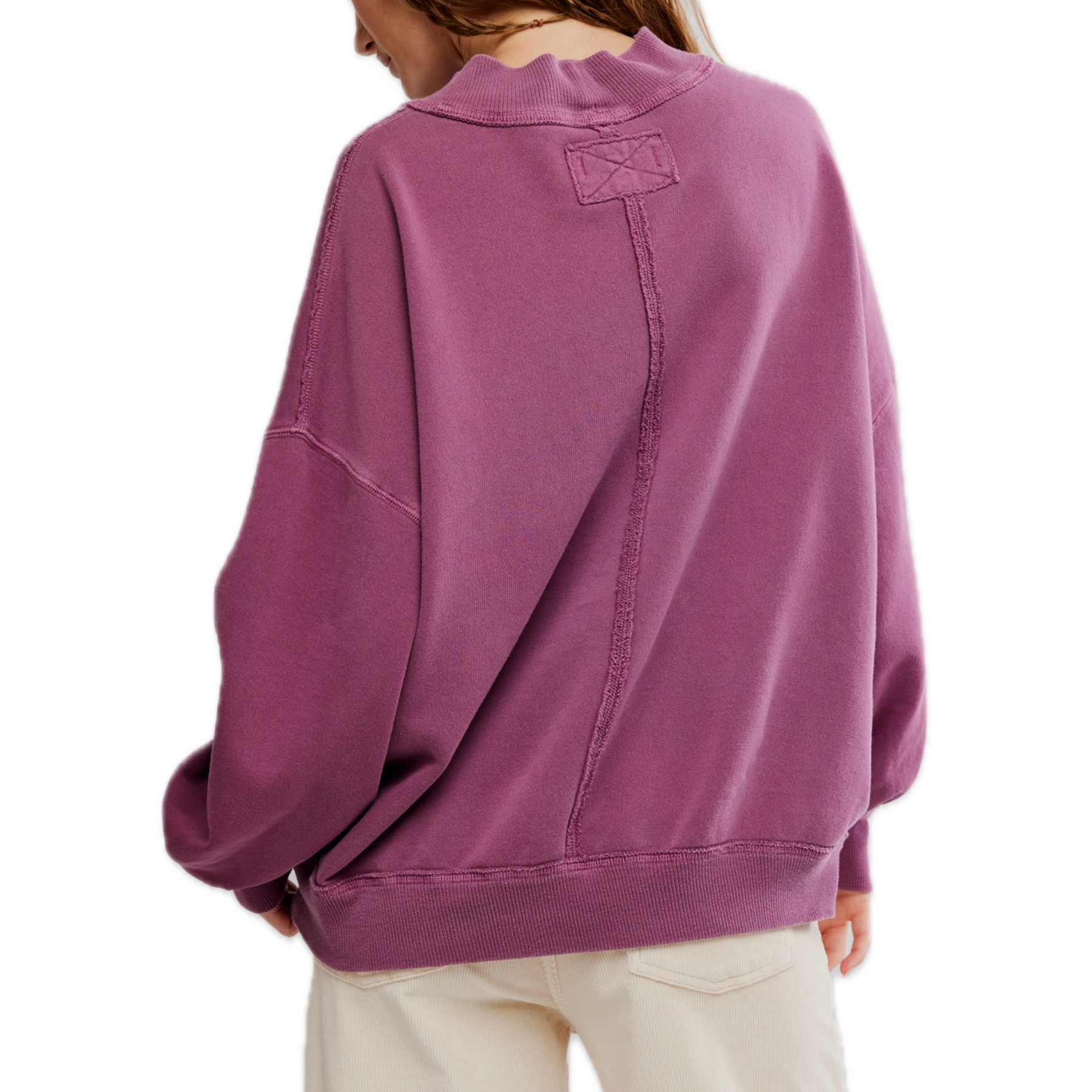 Cozy meets cool in the Palm Springs Pullover in Damson by Free People. From the We The Free collection, this oversized fall pullover features soft French terry fabric, a relaxed mock neckline, drop shoulders, and exposed seams for that lived-in look. With its slouchy fit and rich seasonal hue, it’s the perfect layering piece for fall — comfy, effortless, and endlessly wearable.
