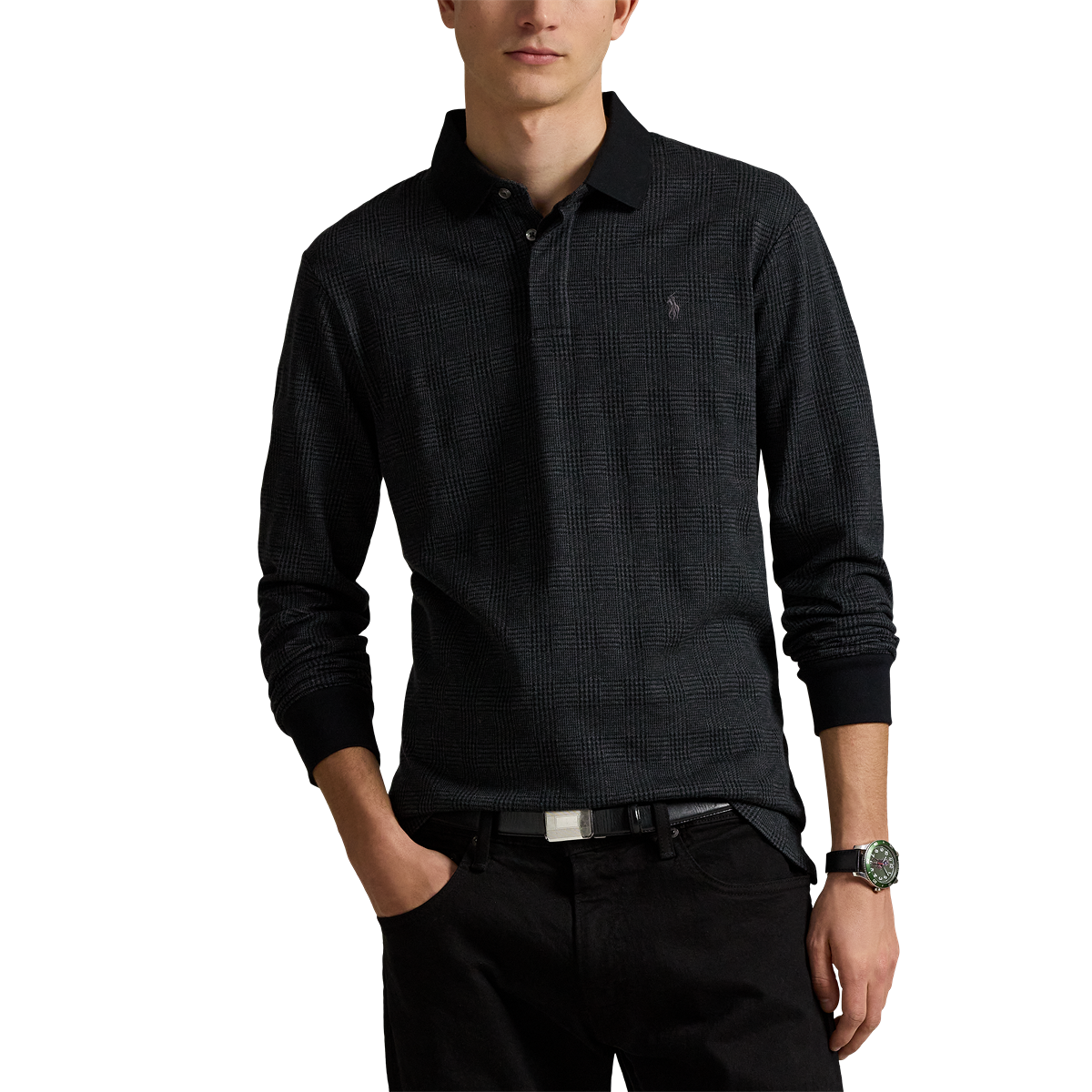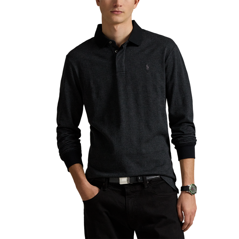 The Prince of Wales Knit Polo in Charcoal by Ralph Lauren offers a sleek, modern update to classic men’s fall style. With a refined mockneck, quarter-zip placket featuring faux-suede trim, and custom "Polo" logo zipper pull, this long-sleeve polo balances comfort and sophistication. Finished with banded cuffs, hem, and the iconic embroidered Polo Pony, it’s a versatile essential for any fall wardrobe.