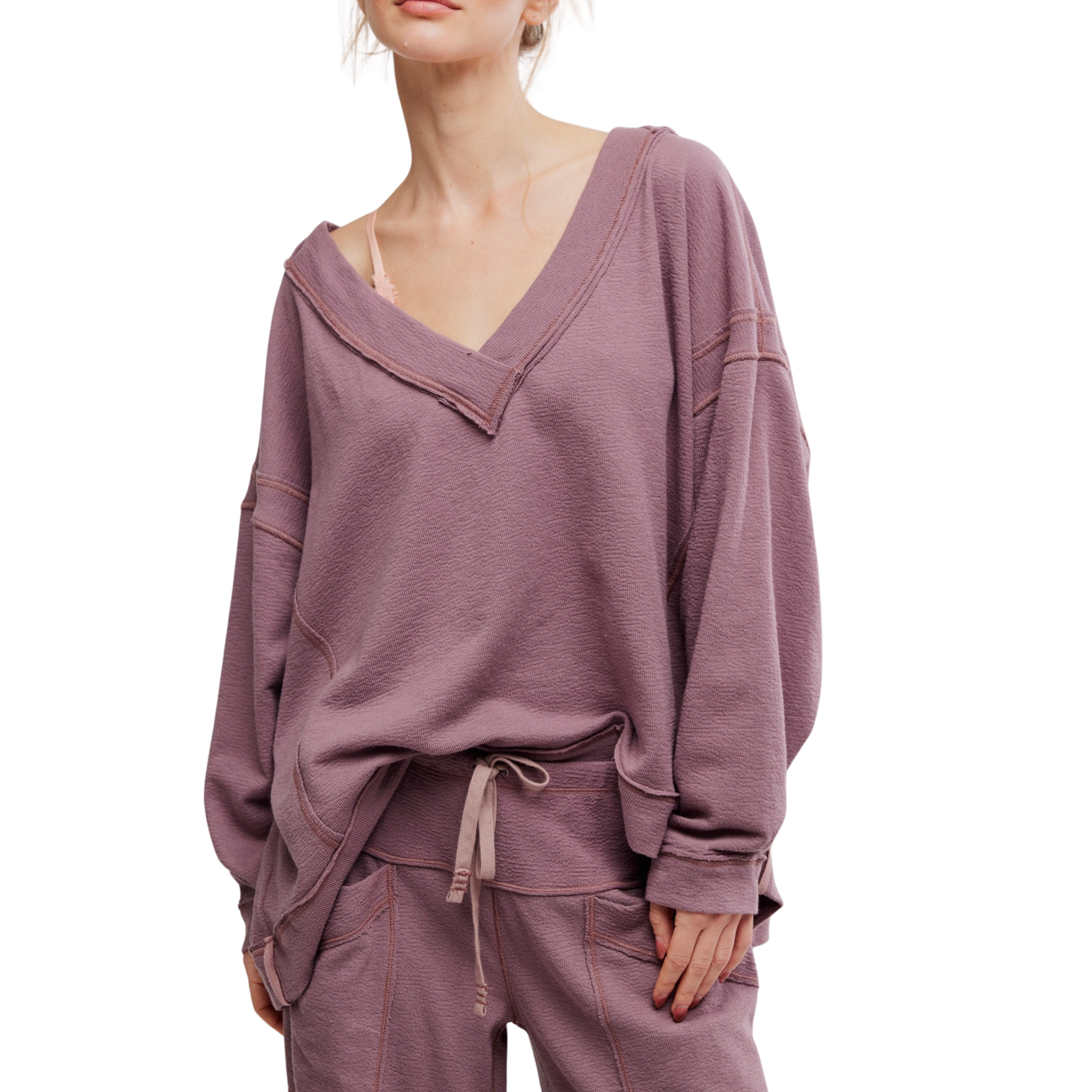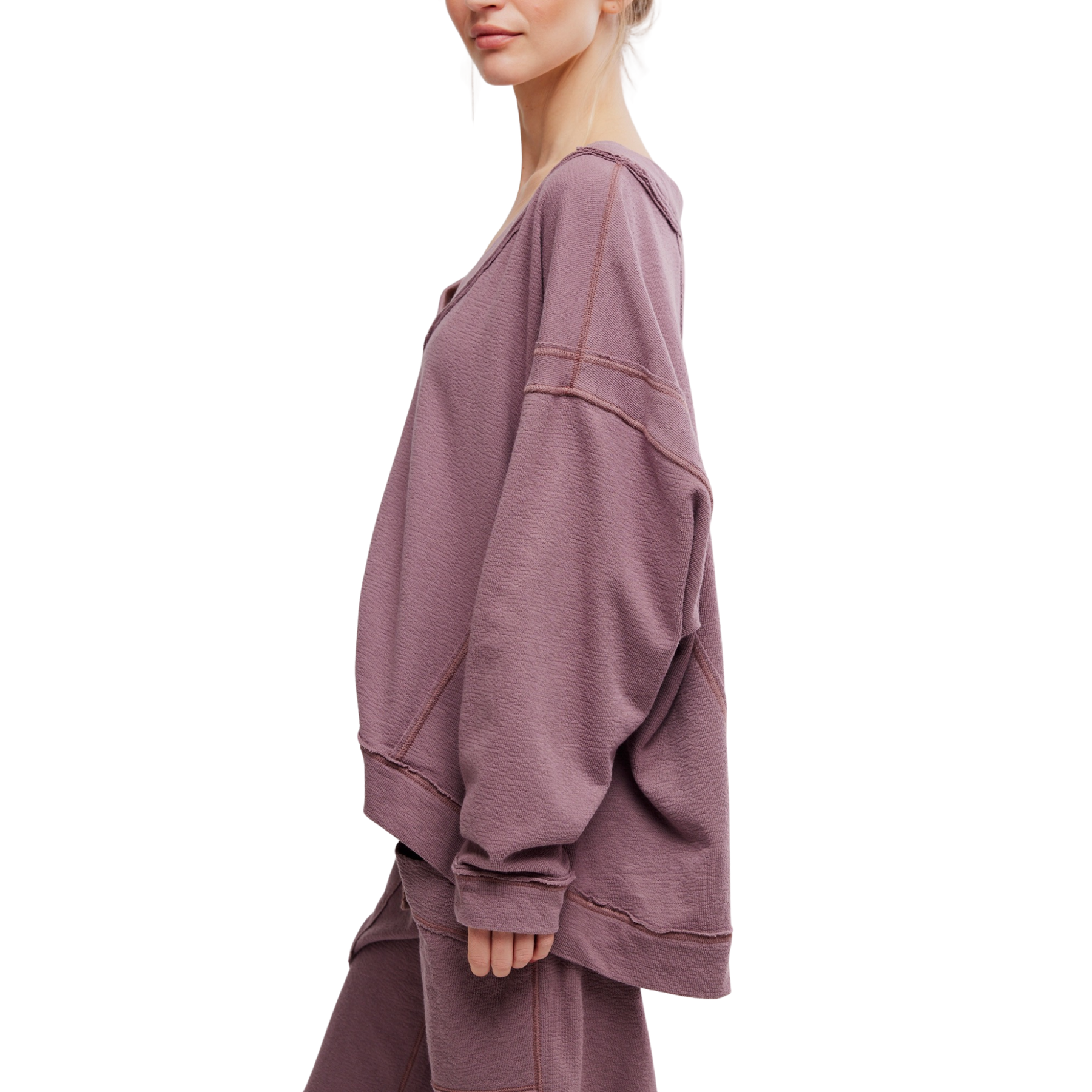The Staycation Pullover in Elderberry Tea by Free People is a cozy high-rise pullover sweatshirt designed for effortless comfort and style. With a relaxed fit, soft fabric, and casual silhouette, this everyday lounge top pairs perfectly with joggers or jeans for a laid-back, chic look. Ideal for cozy days at home, running errands, or casual outings, it’s the ultimate loungewear sweatshirt that blends comfort with modern, effortless style.