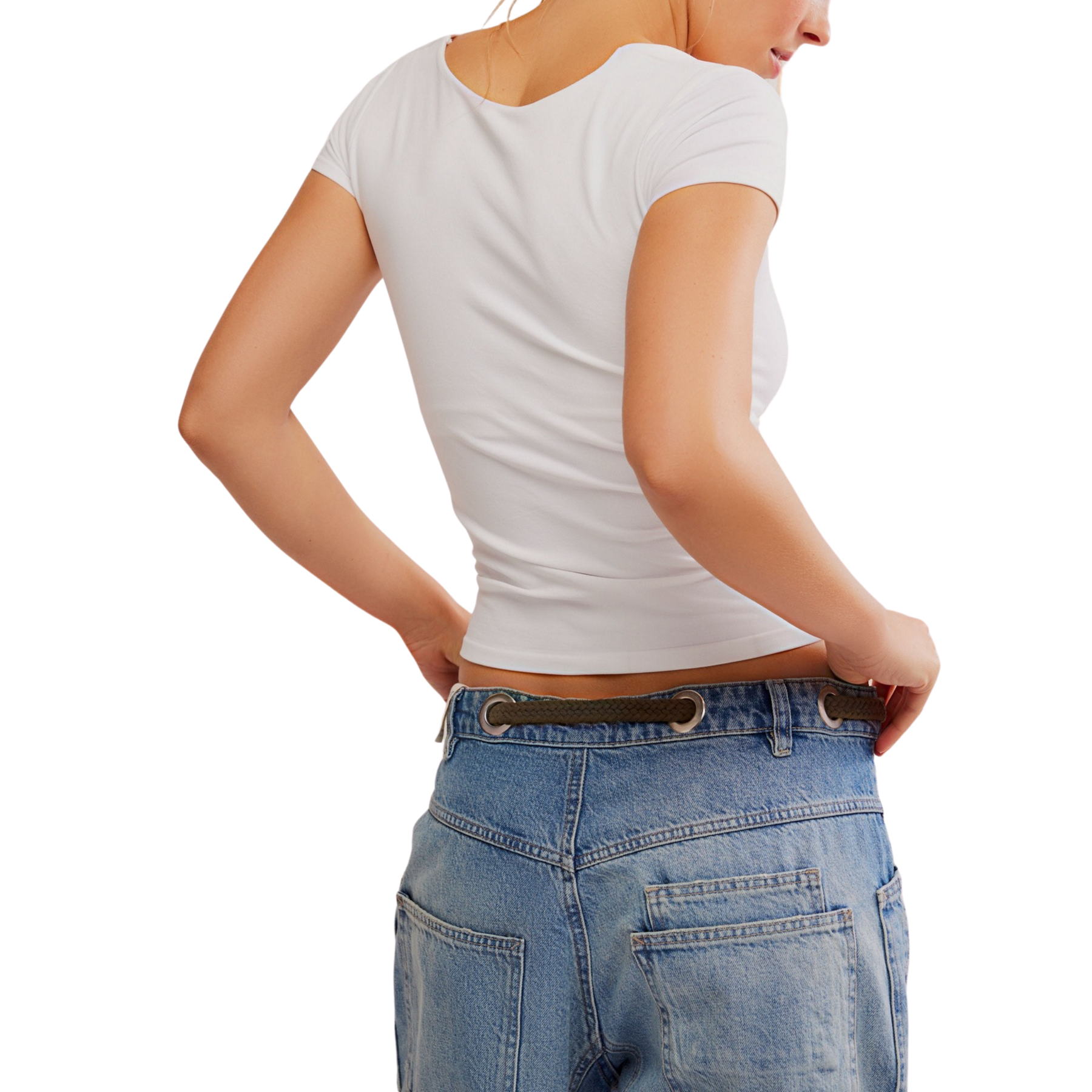 Elevate your basics with the Sunfade Baby Tee in White by Free People — a must-have women’s seamless tee crafted for everyday comfort and style. Featuring a slim-fitting, hip-length silhouette, square neckline, and cap-inspired sleeves, this white seamless top offers buttery-soft, stretchy fabric with subtle bust lining for a polished look. Perfect for layering or wearing solo, this slim-fitting casual tee is an effortless essential you’ll reach for again and again.