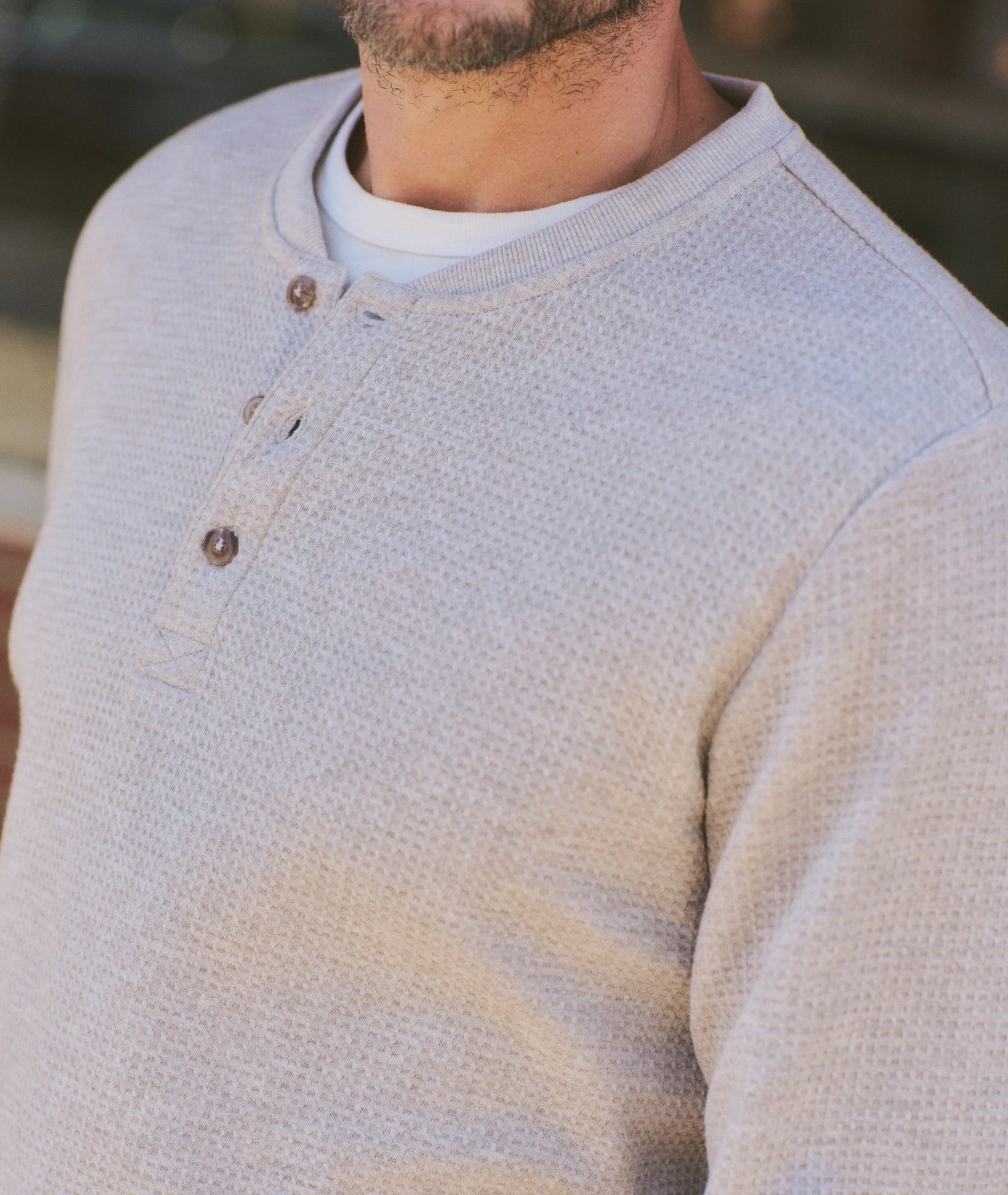 The Waffle Henley in Oatmeal by Marine Layer is the ultimate layering piece for your men’s fall wardrobe. Crafted from ultra-soft double-knit fabric—smooth on the inside, textured on the outside—this waffle knit henley offers the perfect balance of comfort, warmth, and breathability. With its classic fit and medium weight, it’s great on its own or under your favorite flannel or jacket. A cozy, versatile staple built for the season.
